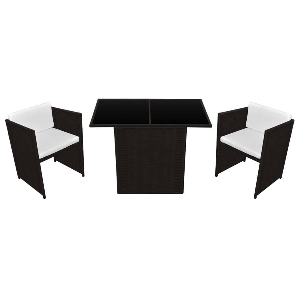 3-cz. zestaw mebli bistro z poduszkami, rattan PE, brązowy