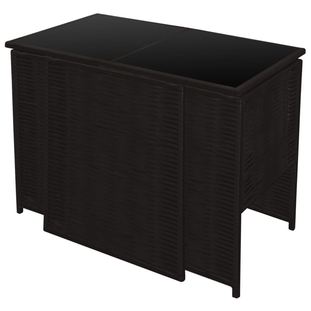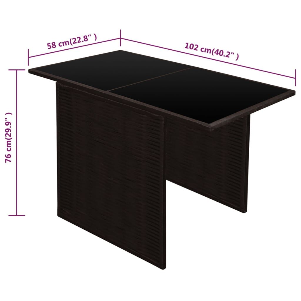 Elegancki zestaw mebli polirattanowych będzie przyciągał uwagę w ogrodzie, na tarasie lub patio. Zestaw wykonany z odpornego na wodę i czynniki pogodowe rattanu PE i z blatem ze szkła jest łatwy do czyszczenia, mocny i odpowiedni do codziennego użytkowania. Kryta proszkowo, stalowa rama sprawia, że stół i krzesła są stabilne i trwałe. Dzięki lekkiej konstrukcji meble są łatwe do przenoszenia. Gdy zestaw nie jest używany, krzesła mogą być schowane pod stołem. Grube, zdejmowane poduszki są wyjątkowo komfortowe. Poszewki na poduszki z suwakami można łatwo zdjąć i wyprać. W skład przesyłki wchodzi 1 stół z blatem ze szkła, 2 krzesła, 2 poduszki na siedzenia i 2 na oparcia. Uwaga: zalecamy przykrycie zestawu na czas deszczu, śniegu i mrozu.