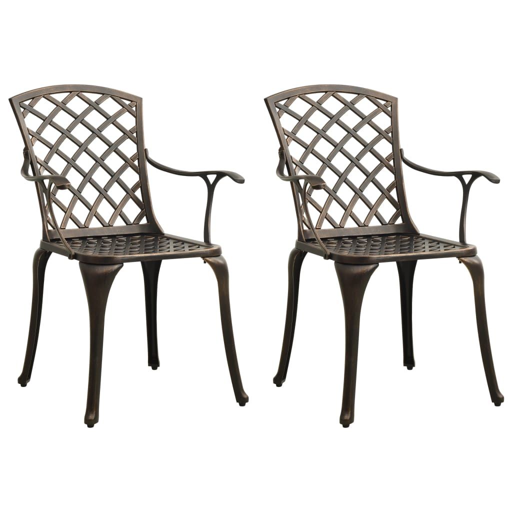 Opis produktu: Zestaw mebli bistro, wykonany z odlewanego aluminium, zapewni komfort siedzenia Tobie i Twoim gościom. Krzesła i stolik z aluminiowego odlewu są zarówno mocne, jak i trwałe. Odporny na rdzewienie i czynniki pogodowe materiał sprawia, że meble są idealne do użytku na zewnątrz. Za sprawą pięknych wzorów stanowią one elegancki dodatek do Twojej przestrzeni na świeżym powietrzu. Ponadto stolik kawowy ma otwór, w którym możesz umieścić swój parasol i osłonić się przed słońcem i deszczem. Uwaga: aby przedłużyć żywotność mebli ogrodowych, zalecamy zabezpieczenie ich wodoodpornym pokrowcem.