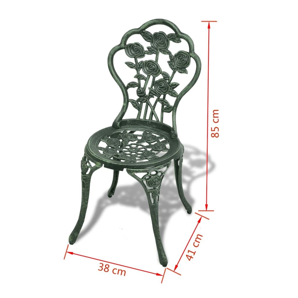 Elegancki zestaw mebli bistro doda odrobinę luksusu do każdego posiłku. Rozmowy lub odpoczynek przy filiżance kawy staną się jeszcze przyjemniejsze dzięki ozdobnemu a zarazem funkcjonalnemu kompletowi mebli ogrodowych. Zestaw mebli bistro wykonano ze stopu aluminium, który jest odporny na działanie pogody i bardzo trwały. Żeliwne nogi dodają stabilności meblom. Kwiatowy wzór wniesie odrobinę romantyzmu do każdego ogrodu, patio lub tarasu. W skład przesyłki wchodzi 1 okrągły stół i 2 krzesła.