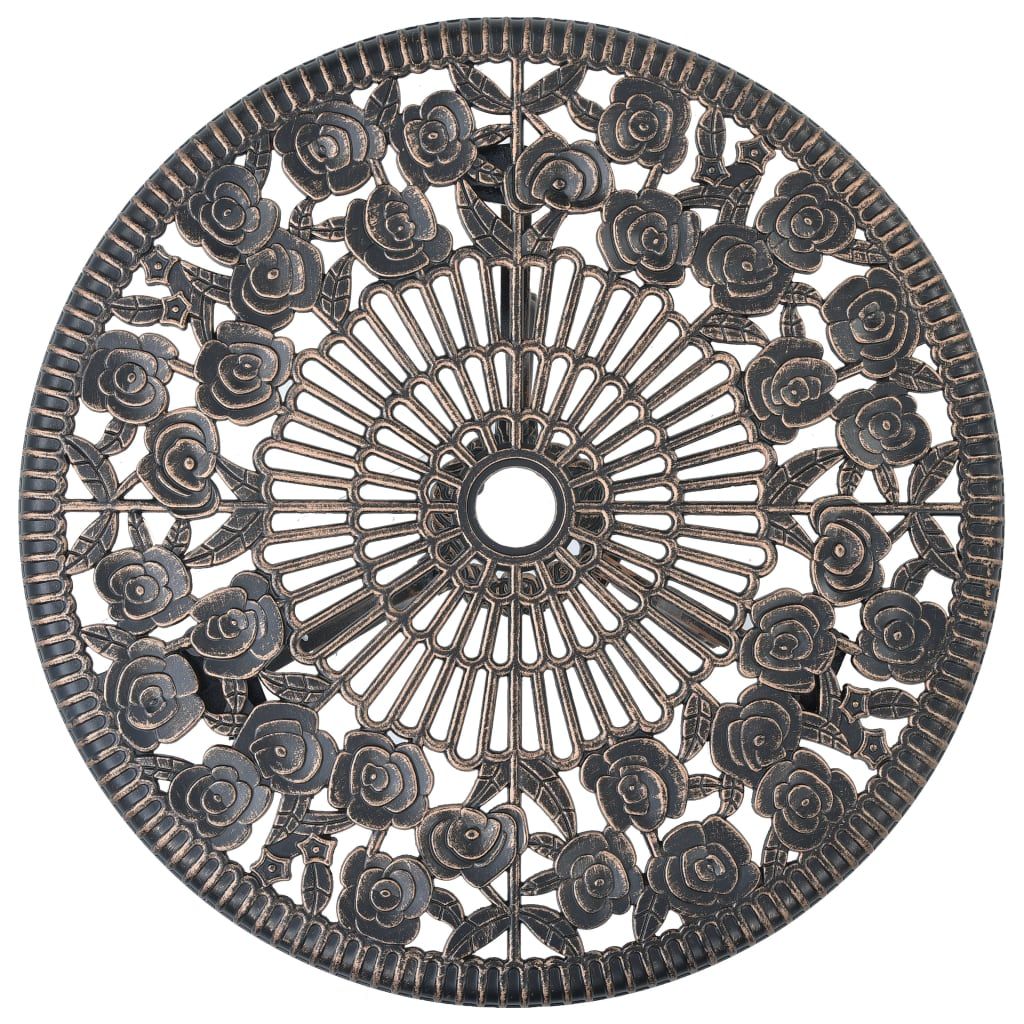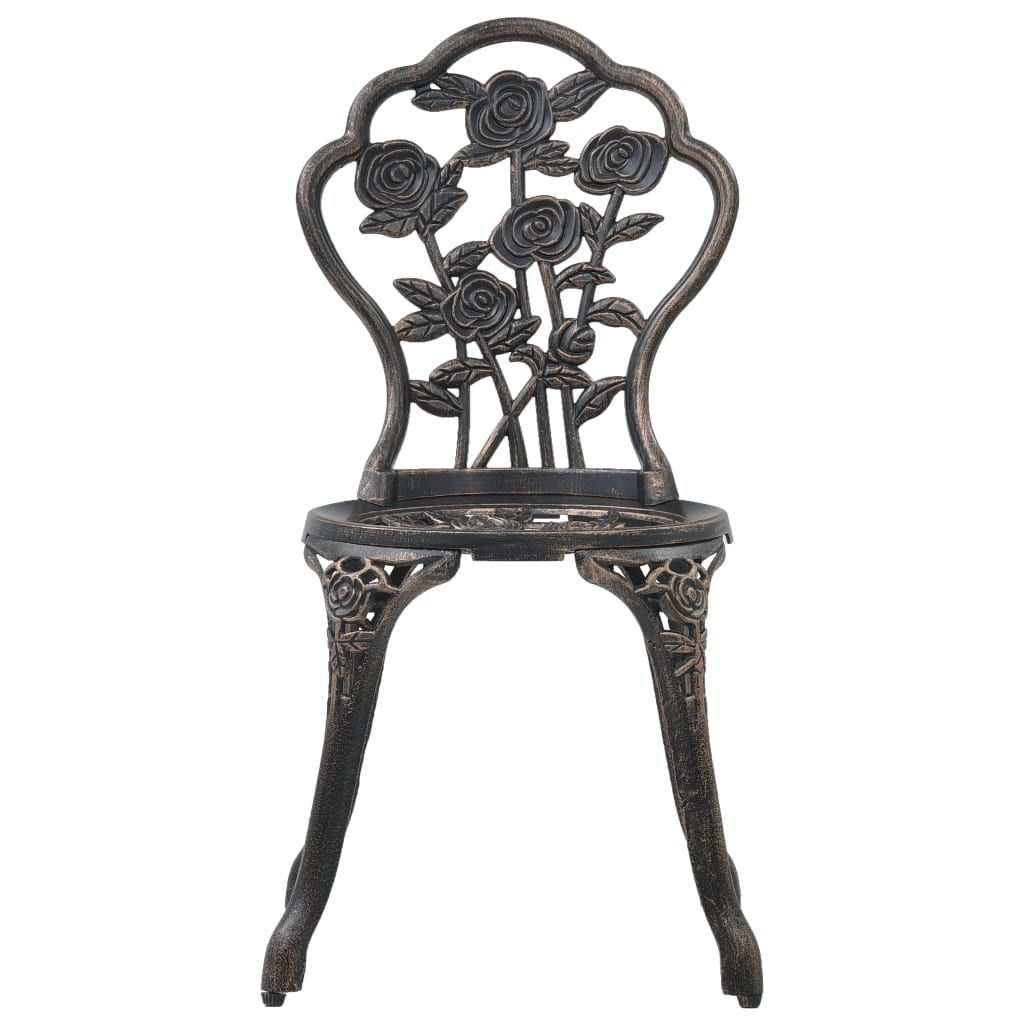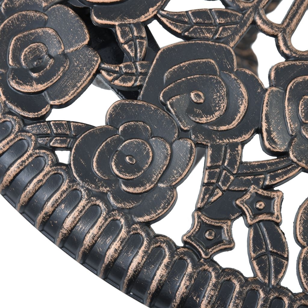 Ten zestaw mebli bistro ze stopu aluminium ma elegancką formę i składa się z 1 stołu i 2 krzeseł. Będzie to idealny wybór, jeżeli lubisz jadać posiłki na balkonie lub w ogrodzie. Doskonale sprawdzi się też używany w barach i restauracjach. Ogrodowy stół i krzesła wykonano z mocnego stopu aluminium, który jest odporny na działanie pogody i bardzo trwały. Żeliwne nogi dodają stabilności meblom. Kwiatowy wzór wniesie odrobinę romantyzmu do każdego ogrodu, patio lub tarasu. W skład przesyłki wchodzi 1 okrągły stół i 2 krzesła.
