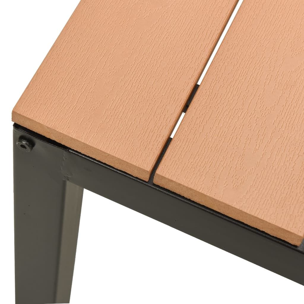 Opis produktu: Zestaw mebli jadalnianych do ogrodu będzie doskonałym rozwiązaniem wszędzie tam, gdzie potrzebne jest wytrzymałe i odporne na czynniki pogodowe, a zarazem wygodne siedzisko. Zestaw wykonano ze stali i WPC (kompozytu drewna i plastiku), dzięki czemu jest bezpieczny, przyjazny dla środowiska i trwały na potrzeby użytkowania na zewnątrz. Ławki zapewnią komfortowe siedziska, a solidny blat sprawdzi się idealnie do postawienia napojów i potraw. Jest to dobry wybór do każdego ogrodu i innej przestrzeni zewnętrznej. Uwaga: aby przedłużyć żywotność mebli ogrodowych, zalecamy zabezpieczenie ich wodoodpornym pokrowcem.