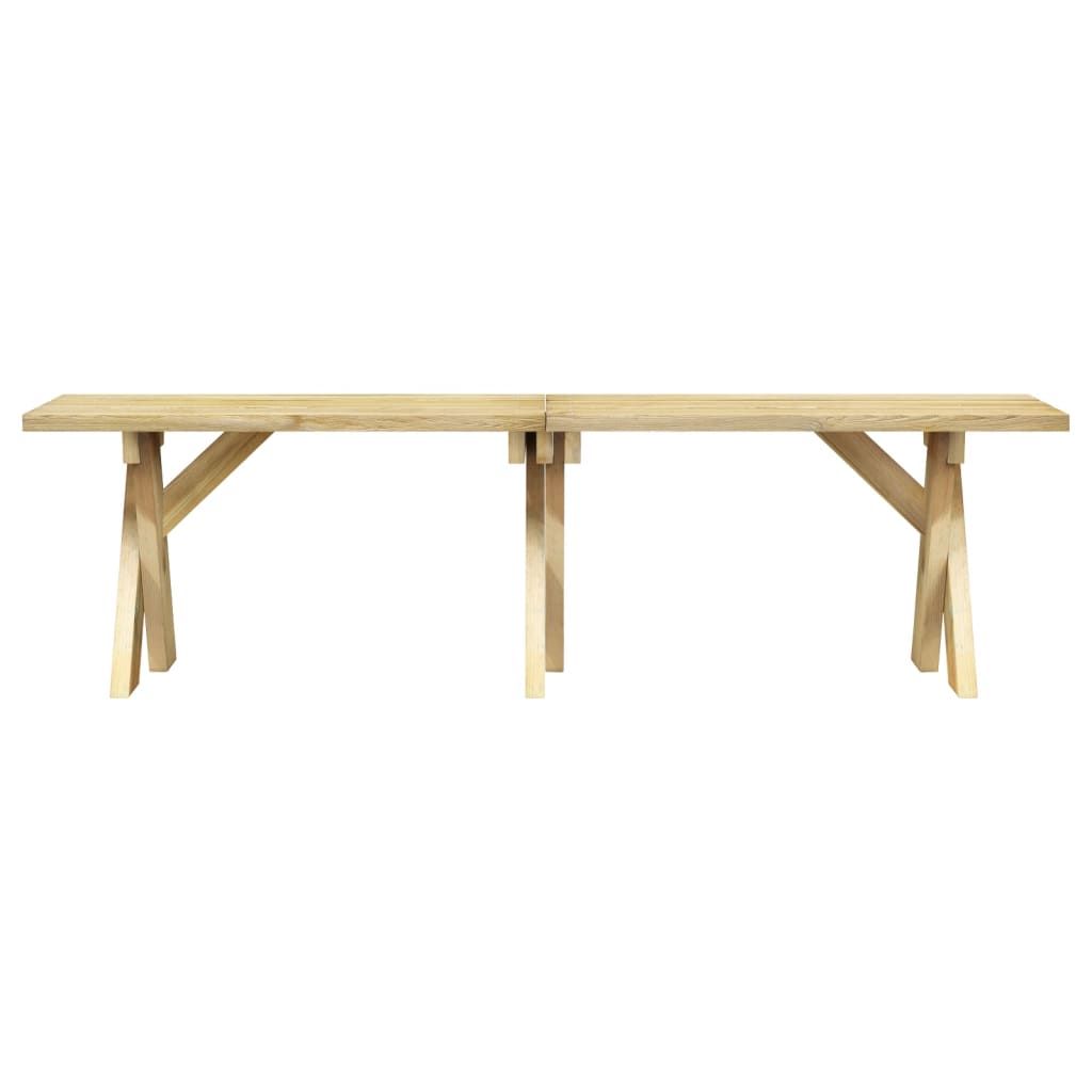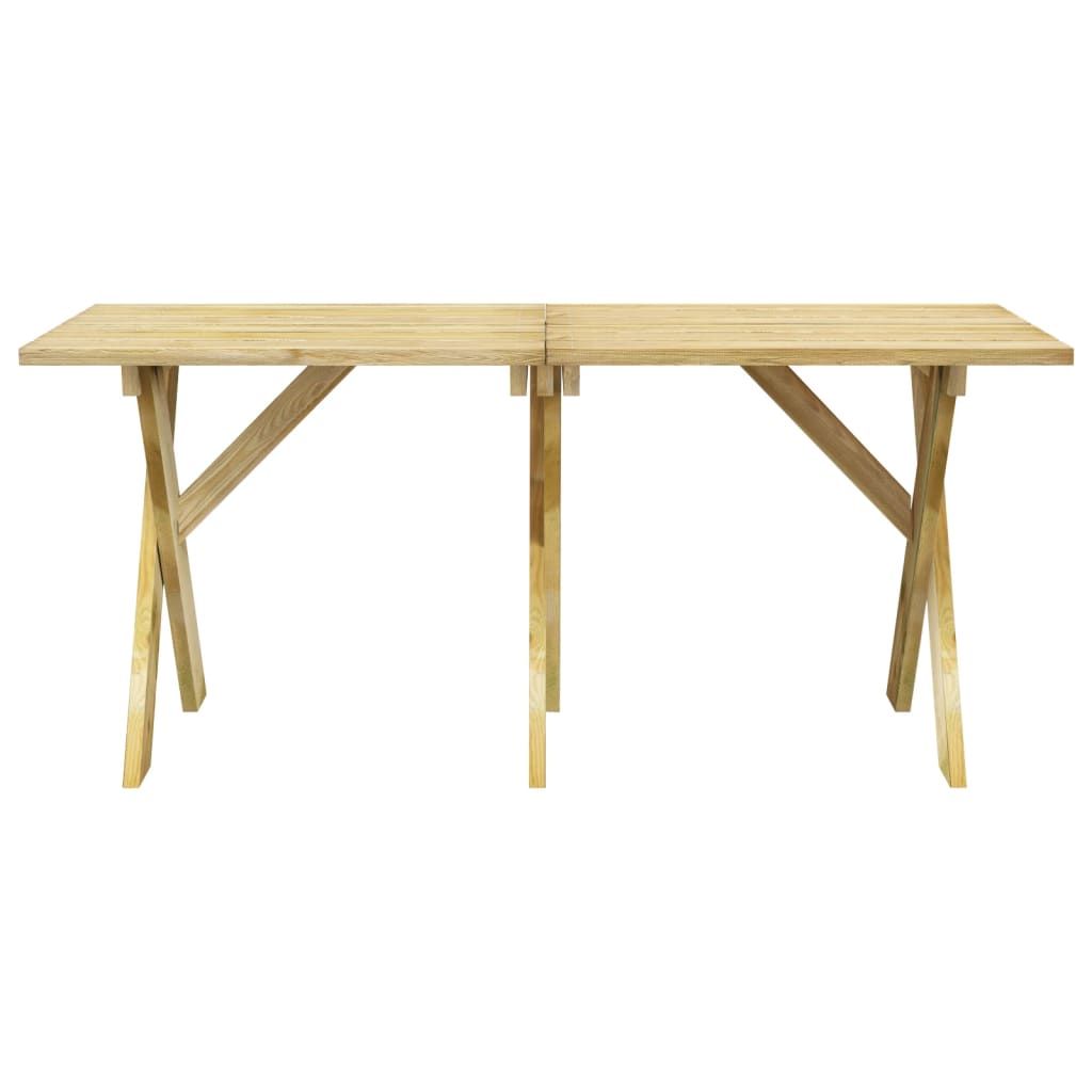 Stylowy, a przy tym praktyczny zestaw mebli ogrodowych sprawi, że Twój salon na świeżym powietrzu zyska klasę! Wykonany z impregnowanego na zielono drewna sosnowego zestaw mebli jest bardzo mocny, trwały i odporny na korozję. Stanowi on idealny wybór do relaksu w romantycznym ogrodzie przy domu wiejskim lub nad idyllicznym oczkiem wodnym oraz spożywania posiłków z rodziną i przyjaciółmi. Prosimy mieć na uwadze, że drewno jest materiałem naturalnym i może wykazywać pewne niedoskonałości. Uwaga: aby przedłużyć żywotność mebli ogrodowych, zalecamy ich regularne czyszczenie i niepozostawianie na zewnątrz bez właściwego zabezpieczenia.Czyszczenie: użyj roztworu wody z delikatnym detergentemPrzechowywanie: jeśli to możliwe, przechowuj produkt w chłodnym i suchym miejscu, najlepiej w pomieszczeniu. Jeśli ma być on przechowywany na zewnątrz, należy go zabezpieczyć wodoszczelną osłoną. Po opadach deszczu lub śniegu usuń nadmiar wody lub śniegu z płaskich powierzchni i osusz je. Zapewnij wystarczającą cyrkulację powietrza, aby uniknąć uszkodzeń spowodowanych wilgocią.