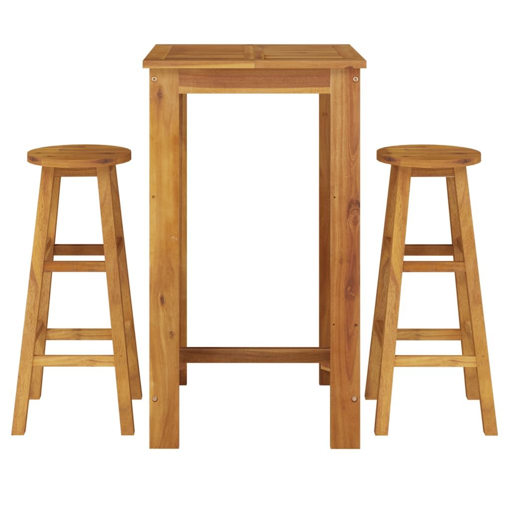 Opis produktu: Zestaw drewnianych mebli o eleganckim i współczesnym designie sprawdzi się znakomicie do zaserwowania posiłku na świeżym powietrzu lub do relaksu w ogrodzie. Lite drewno akacjowe: drewno akacjowe to piękny, naturalny materiał. Jest to twarde drewno tropikalne, cechujące się zwartą strukturą, solidnością i trwałością. Wykonany z tego materiału komplet mebli jest odpowiedni do użytkowania zarówno w pomieszczeniach, jak i na zewnątrz. Solidny blat: wykonany z litego drewna blat oferuje dużo miejsca. Możesz na nim postawić przekąski, napoje oraz ulubione dekoracje. Wygodne miejsce do siedzenia: podpórki pod nogi zapewniają większy komfort siedzenia.Łatwa do czyszczenia powierzchnia: olejowana powierzchnia zapewnia łatwe czyszczenie tych drewnianych mebli – wystarczy przetrzeć je wilgotną ściereczką. Uwaga:Każdy produkt jest dostarczany wraz z instrukcją montażu dla ułatwienia tej czynności. Aby przedłużyć żywotność mebli ogrodowych, zalecamy zabezpieczenie ich wodoodpornym pokrowcem.