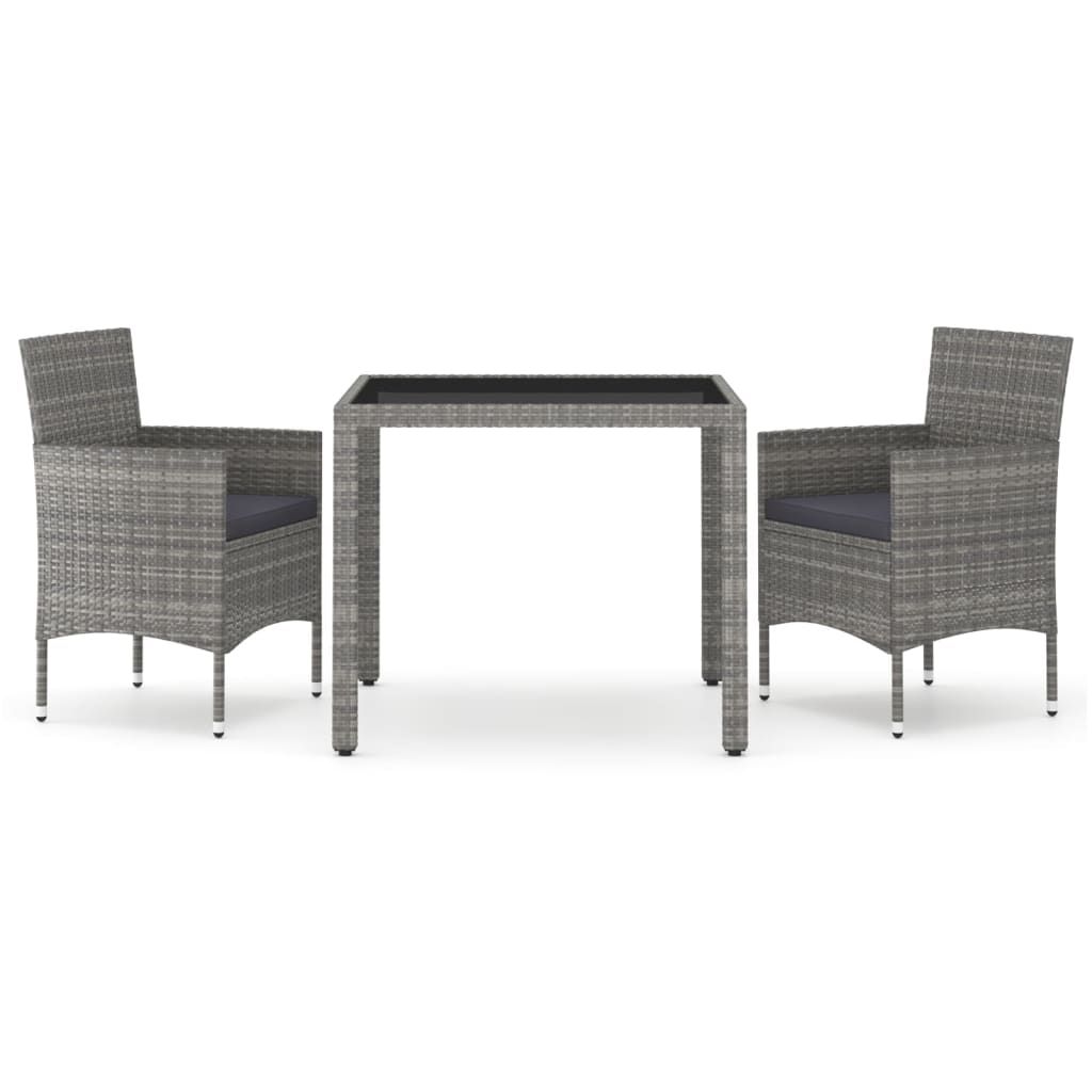 3-cz. zestaw mebli ogrodowych, rattan PE i szkło, szary