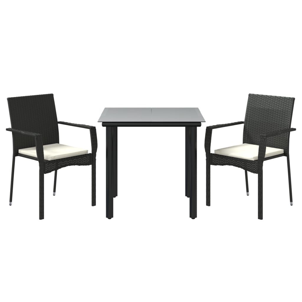 3-cz. zestaw mebli ogrodowych z poduszkami, czarny rattan PE