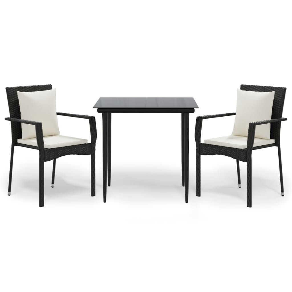 3-cz. zestaw mebli ogrodowych z poduszkami, czarny rattan PE