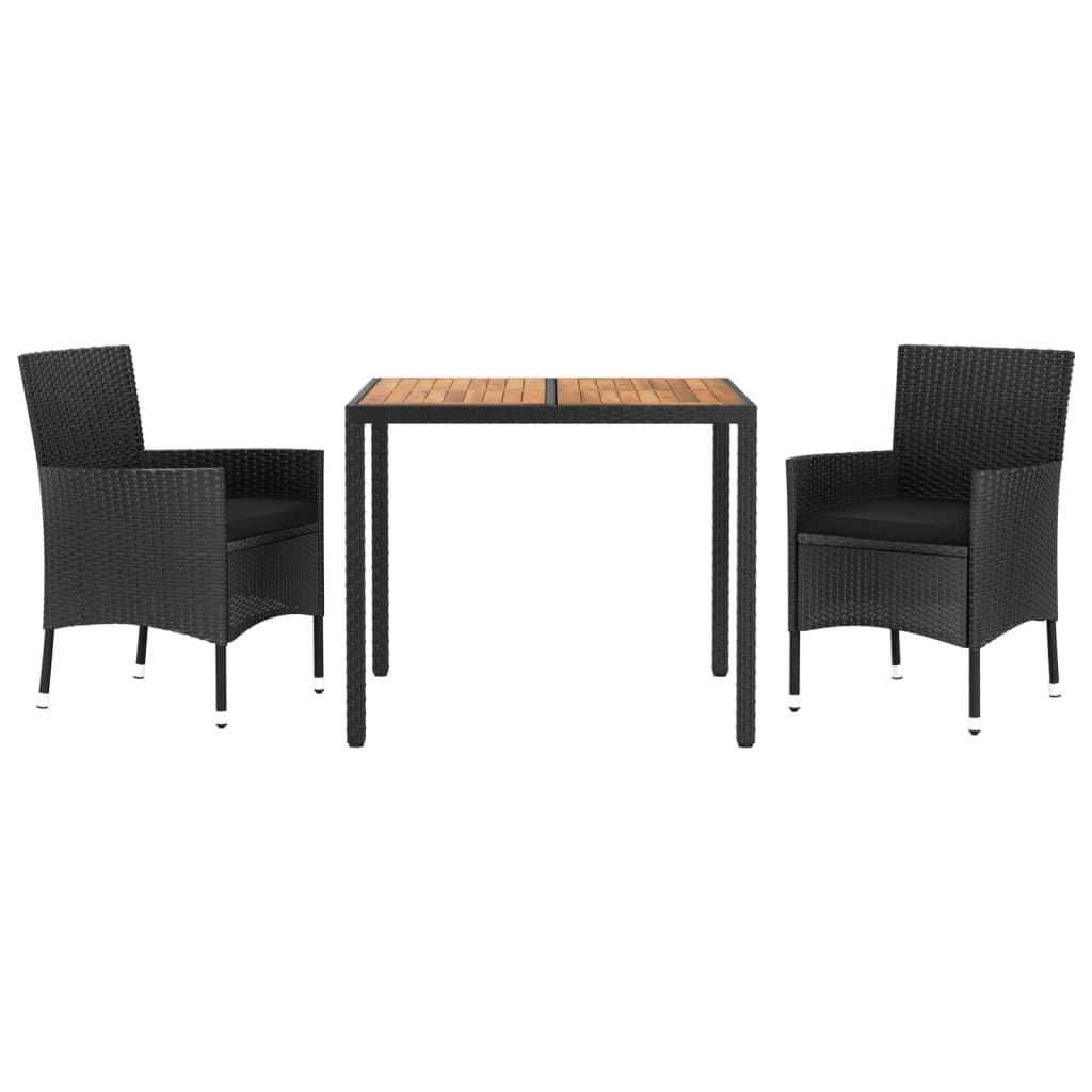 3-cz. zestaw mebli ogrodowych z poduszkami, czarny, rattan PE