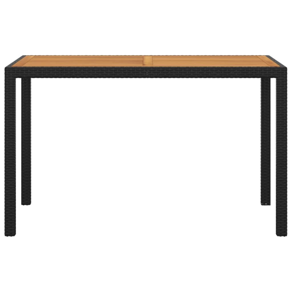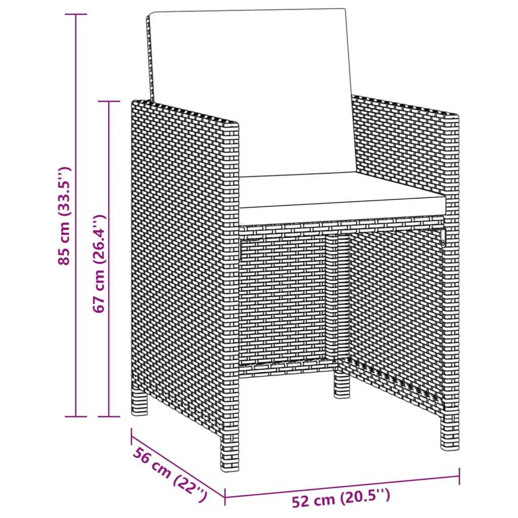 Opis produktu: Zestaw mebli polirattanowych o eleganckim i współczesnym designie będzie znakomity do zaserwowania posiłku na świeżym powietrzu lub do relaksu w ogrodzie. Do użytku na zewnątrz: wykonany z odpornego na czynniki pogodowe i wodę rattanu PE zestaw ogrodowy jest łatwy do czyszczenia, wytrzymały i odpowiedni do codziennego użytkowania. Materiał dobrej jakości: malowana proszkowo rama ze stali sprawia, że stół i krzesła są solidne i trwałe. Blat wykonany jest z litego drewna akacjowego z naturalnym wykończeniem olejowym. Drewno to jest odporne na warunki atmosferyczne i wodę oraz niezwykle trwałe. Grube, miękkie, wypełnione gąbką poduszki na siedziska i oparcia zapewniają większy komfort siedzenia. Zdejmowane poszewki, które można prać, wyposażone zostały w praktyczne zamki.Przestawna konstrukcja: możesz opuścić oparcia i wsunąć krzesła pod stół, aby zaoszczędzić cenne miejsce, gdy zestaw nie jest używany. Dzięki lekkości wszystkie elementy można łatwo przestawiać. Uwaga:Aby przedłużyć żywotność mebli ogrodowych, zalecamy zabezpieczenie ich wodoodpornym pokrowcem.