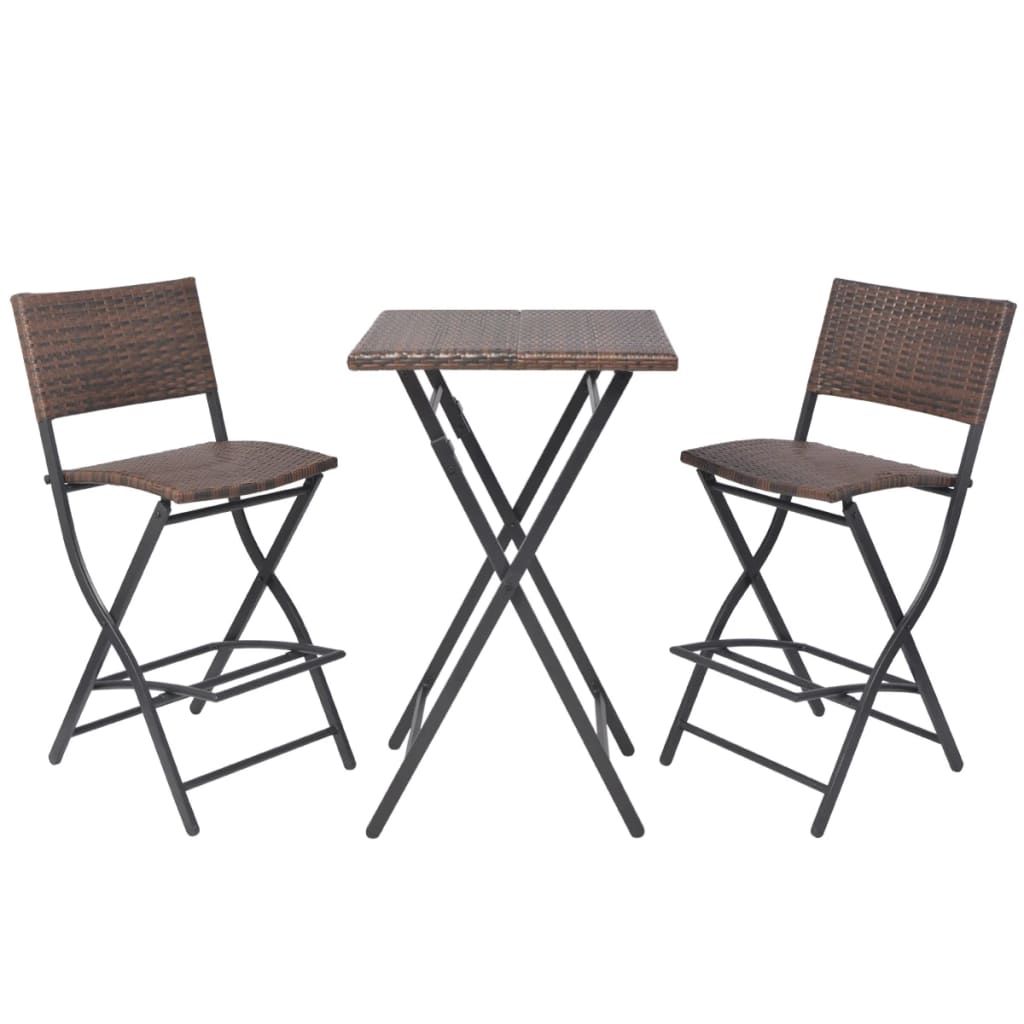 3-cz. zestaw składanych mebli bistro, stal, rattan PE, brązowy