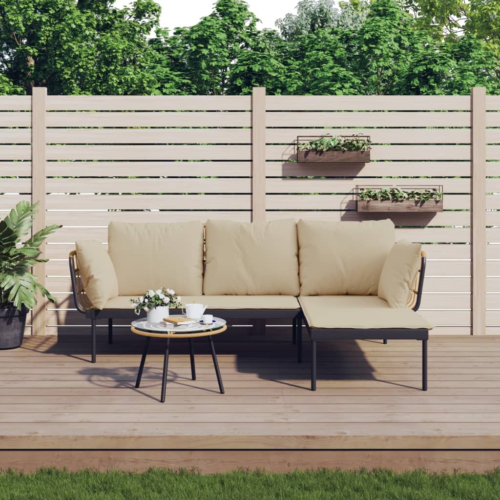 3-cz. zestaw wypoczynkowy do ogrodu, beżowe poduszki, rattan PE