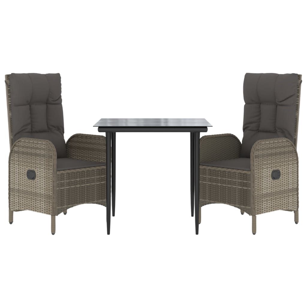 Ten modny zestaw mebli ogrodowych, o eleganckim i współczesnym wyglądzie, będzie znakomitym wyborem do spożywania posiłków lub relaksu na świeżym powietrzu. Odporny na czynniki atmosferyczne materiał: rattan PE, znany też jako polirattan, jest odporny na warunki pogodowe i łatwy w czyszczeniu. Zachowa swoją atrakcyjność przez długi czas użytkowania na zewnątrz. Oferuje także świetną jakość, wygodę i estetyczny wygląd.Solidna rama: malowane proszkowo, stalowe ramy sprawiają, że zestaw ogrodowy jest solidny i stabilny do codziennego użytkowania na zewnątrz.Praktyczny blat: gładki blat stołu ogrodowego wykonano z hartowanego szkła, które można łatwo wyczyścić wilgotną ściereczką. Dodatkowo solidny blat idealnie nadaje się do postawienia posiłków, napojów i przedmiotów dekoracyjnych.Funkcja rozkładania: krzesła ogrodowe zostały specjalnie zaprojektowane z funkcją rozkładania, co pozwala ustawić oparcie w najwygodniejszej dla siebie pozycji.Wygoda siedzenia: oparcie zapewnia większy komfort siedzenia na tym krześle ogrodowym. Ponadto grubo wyściełane poduszki oferują dodatkową wygodę. Warto wiedzieć:Aby maksymalnie ułatwić montaż, każdy produkt jest dostarczany z instrukcją obsługi. Uwaga:Aby utrzymać meble ogrodowe w dobrej kondycji, zalecamy zabezpieczenie ich wodoodpornym pokrowcem.
