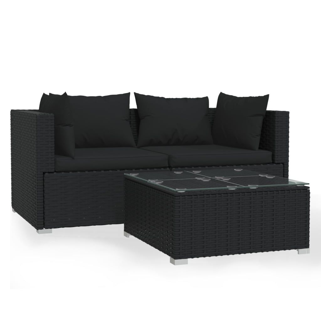 3-cz. zestaw wypoczynkowy do ogrodu, poduszki, czarny rattan PE