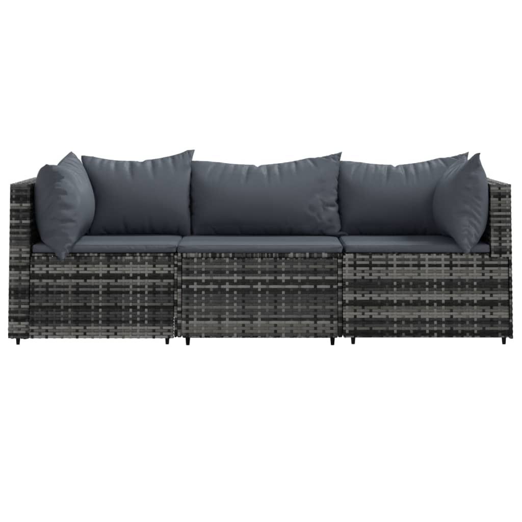 3-cz. zestaw wypoczynkowy do ogrodu, poduszki, szary rattan PE