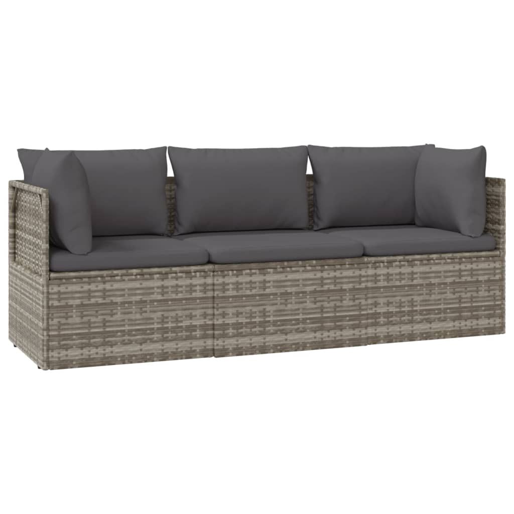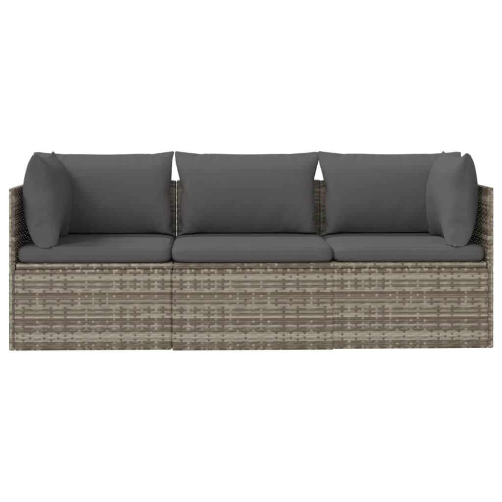 3-cz. zestaw wypoczynkowy do ogrodu, poduszki, szary rattan PE