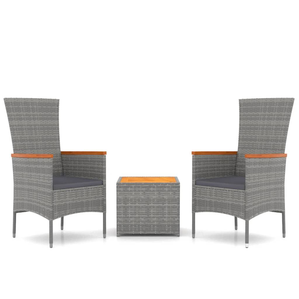 3-cz zestaw wypoczynkowy do ogrodu, szary polirattan i akacja