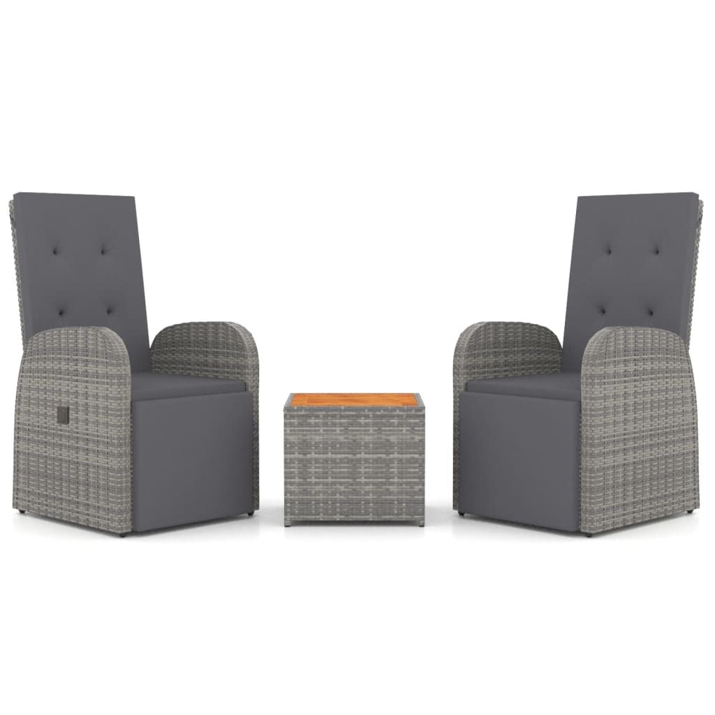 3-cz zestaw wypoczynkowy do ogrodu, szary polirattan i akacja