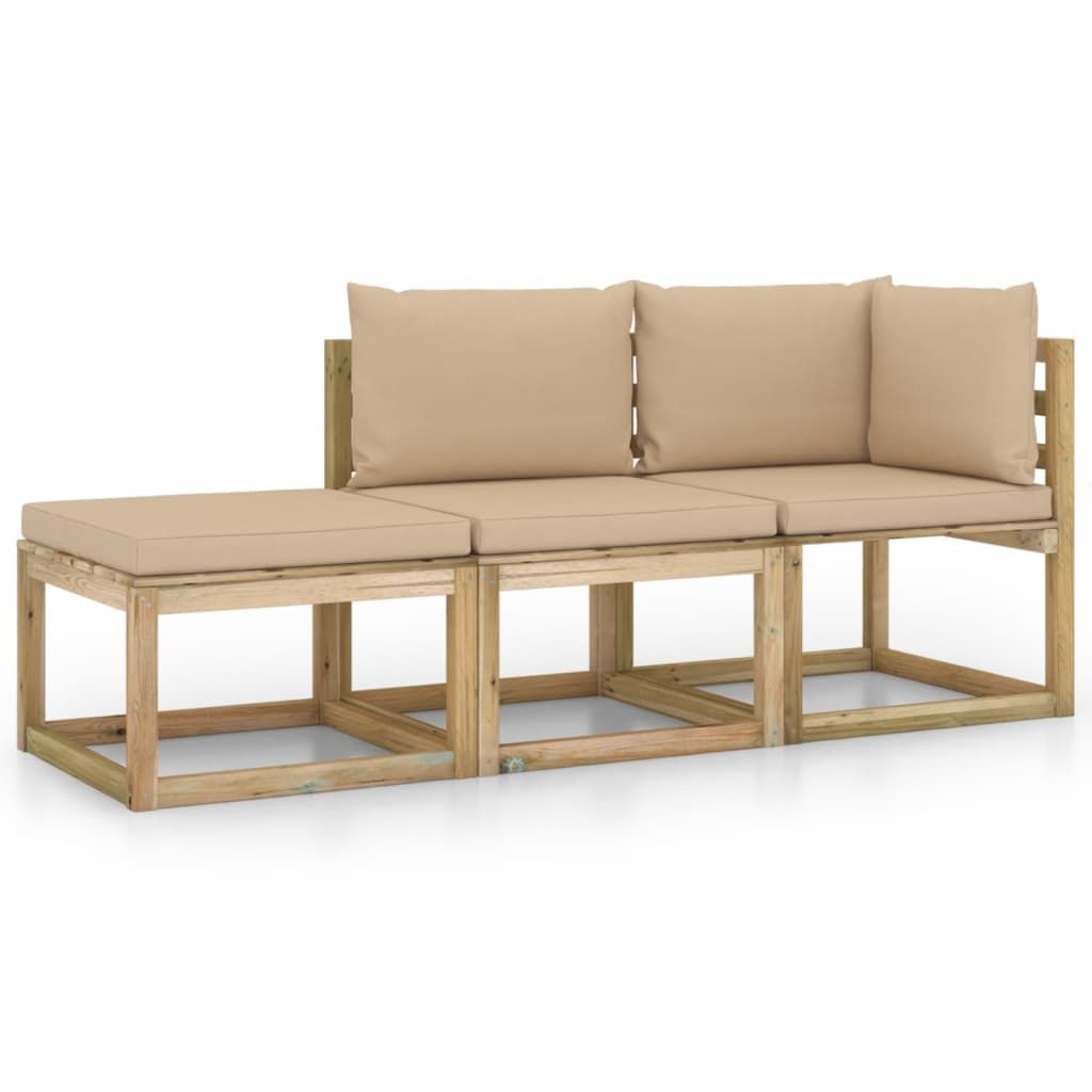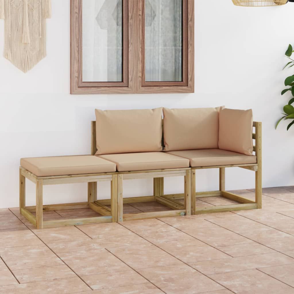 3-cz. zestaw wypoczynkowy do ogrodu, z beżowymi poduszkami