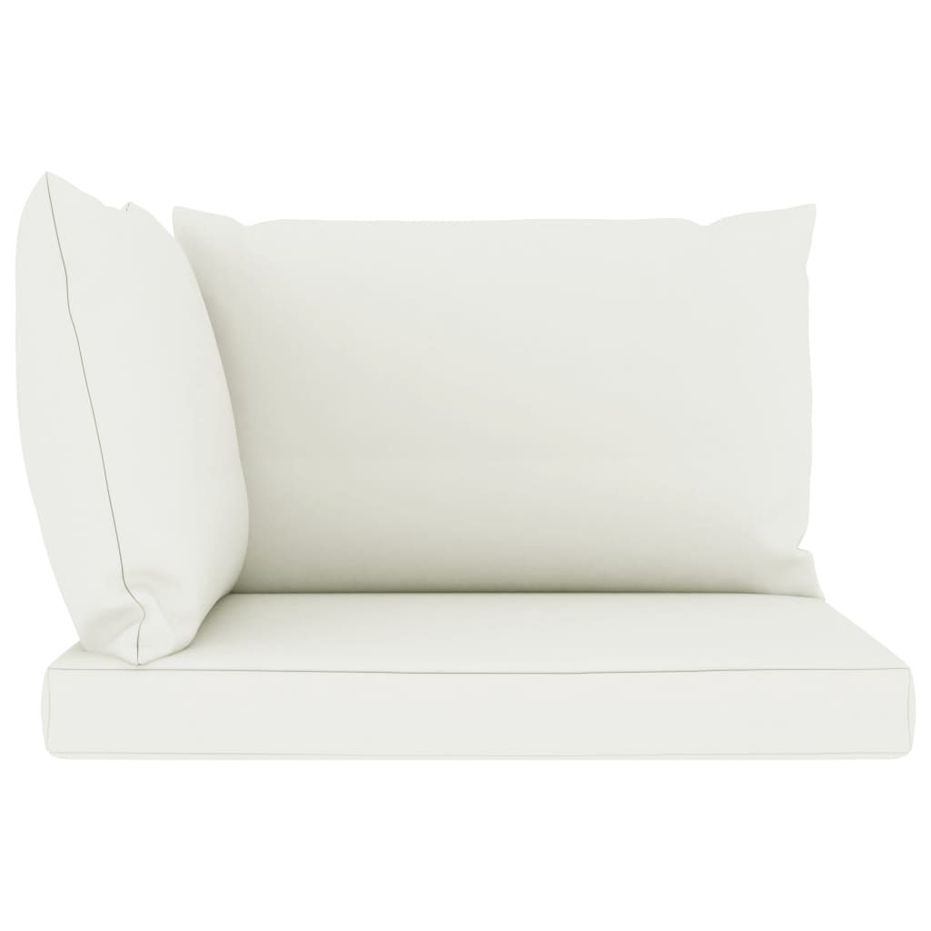 Ten drewniany zestaw ogrodowy to idealny wybór, aby odpocząć i korzystać z pogody, zdrzemnąć się albo porozmawiać z rodziną lub przyjaciółmi. Dzięki ponadczasowej konstrukcji z palet komplet ten doda rustykalnego uroku Twojej przestrzeni. Zestaw wypoczynkowy wykonano z impregnowanego drewna sosnowego, dzięki czemu jest trwały, odporny na warunki atmosferyczne i przyjazny dla środowiska. Ma solidną konstrukcję i jest łatwy w utrzymaniu. Dzięki poszewkom ze 100% poliestru i grubej wyściółce poduszki na siedziska są miękkie i wygodnie. Uwaga: aby przedłużyć żywotność mebli ogrodowych, zalecamy zabezpieczenie ich wodoodpornym pokrowcem.