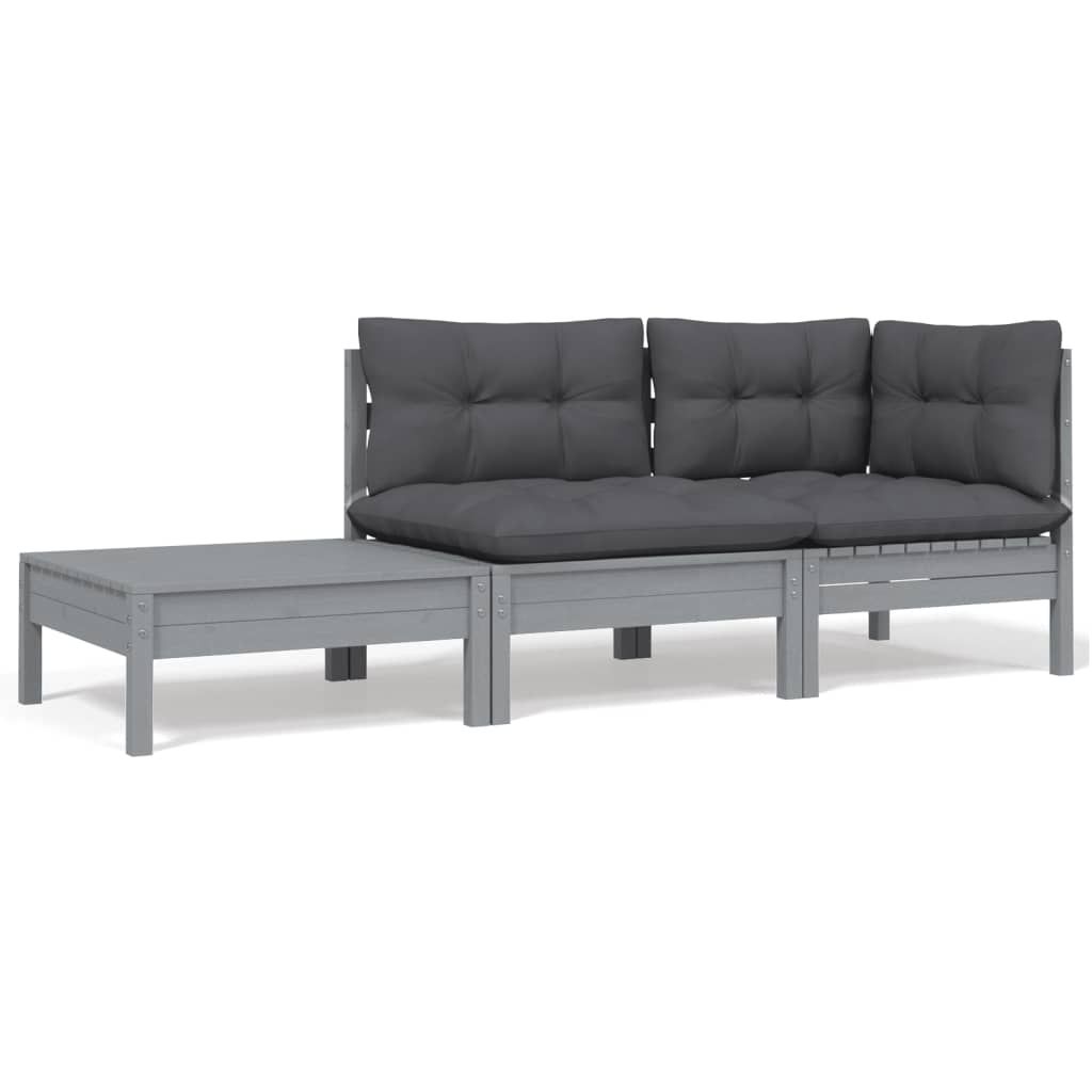 3-cz. zestaw wypoczynkowy do ogrodu, z poduszkami, szary, sosna