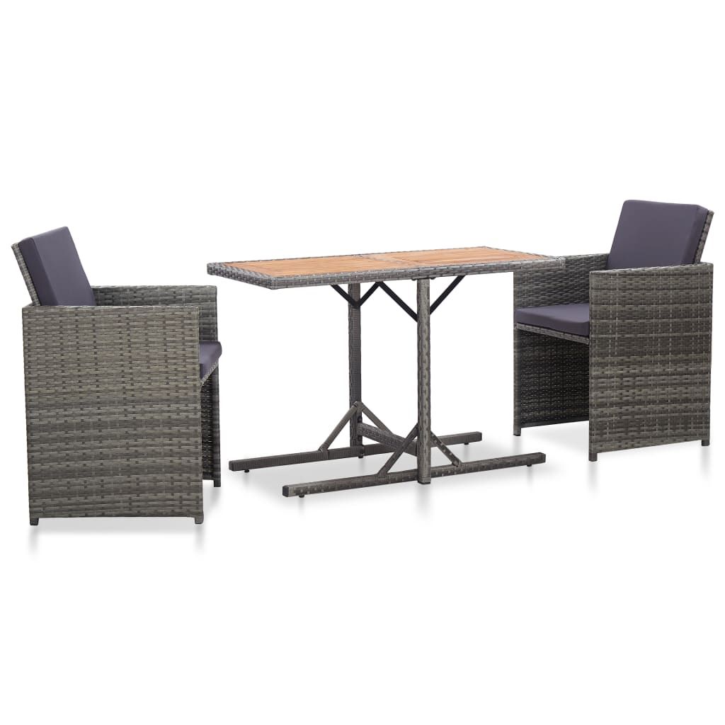 3-częściowy zestaw mebli bistro z poduszkami, rattan PE, szary