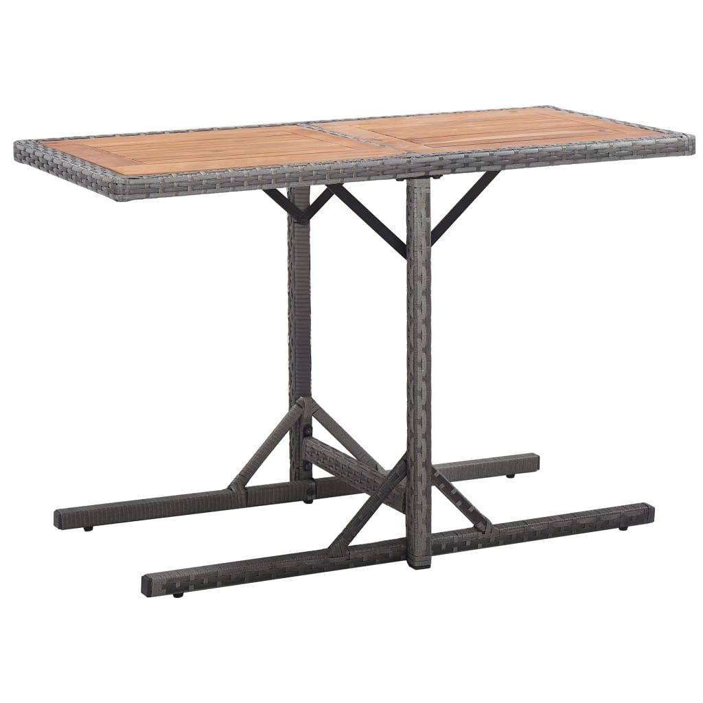 Opis produktu: Stylowy zestaw mebli rattanowych stanie się głównym punktem w Twoim ogrodzie, na tarasie lub patio. Rattanowy zestaw mebli ogrodowych o eleganckiej formie będzie doskonały do spożywania posiłku na świeżym powietrzu lub relaksu w ogrodzie. Zastosowanie odpornego na warunki atmosferyczne i wodę rattanu PE gwarantuje, że meble będą łatwe w czyszczeniu, trwałe i doskonałe do codziennego użytkowania. Stalowe ramy sprawiają, że stół i krzesła są mocne i trwałe. Lekka konstrukcja ułatwia zaś ich przestawianie. Drewniany blat stołu jest łatwy w czyszczeniu za pomocą wilgotnej szmatki. Grube, miękkie, wypełnione pianką poduszki na siedziska i oparcia są niezwykle wygodne i wykonane z wysokiej jakości poliestru. Powłoczki z suwakami można zdjąć i wyprać. Przesyłka zawiera: 1 stół, 2 krzesła oraz 4 poduszki. Uwaga: zalecamy przykrycie zestawu na czas deszczu, śniegu i mrozu.
