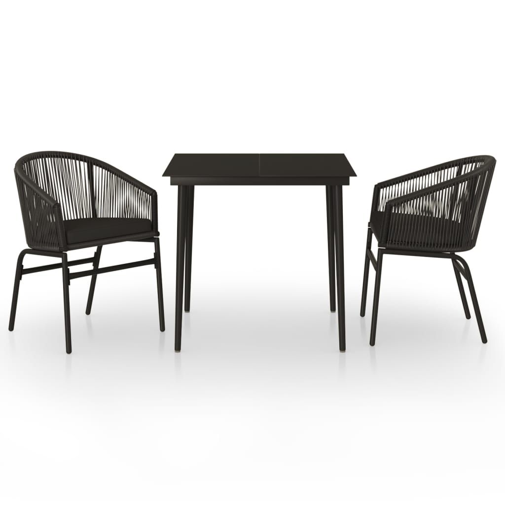 Opis produktu: Stwórz fascynującą i spójną estetykę w swojej przestrzeni na świeżym powietrzu dzięki naszemu zestawowi jadalnianemu do ogrodu! Ten zestaw mebli ogrodowych zawiera ramy z malowanej proszkowo stali, dzięki czemu jest solidny i stabilny do codziennego użytku na zewnątrz. Gładki, szklany blat można łatwo wyczyścić wilgotną ściereczką i doskonale nadaje się do postawienia posiłków, napojów i elementów dekoracyjnych. Krzesła ogrodowe wykonano z rattanu PVC, co sprawia, że są stabilne oraz odporne na niekorzystne czynniki pogodowe i promienie UV. Oprócz tego każde siedzisko zawiera zdejmowaną, grubo wypełnioną poduszkę, zapewniając większy komfort w czasie wypoczynku. Uwaga: aby przedłużyć żywotność mebli ogrodowych, zalecamy zabezpieczenie ich wodoodpornym pokrowcem.
