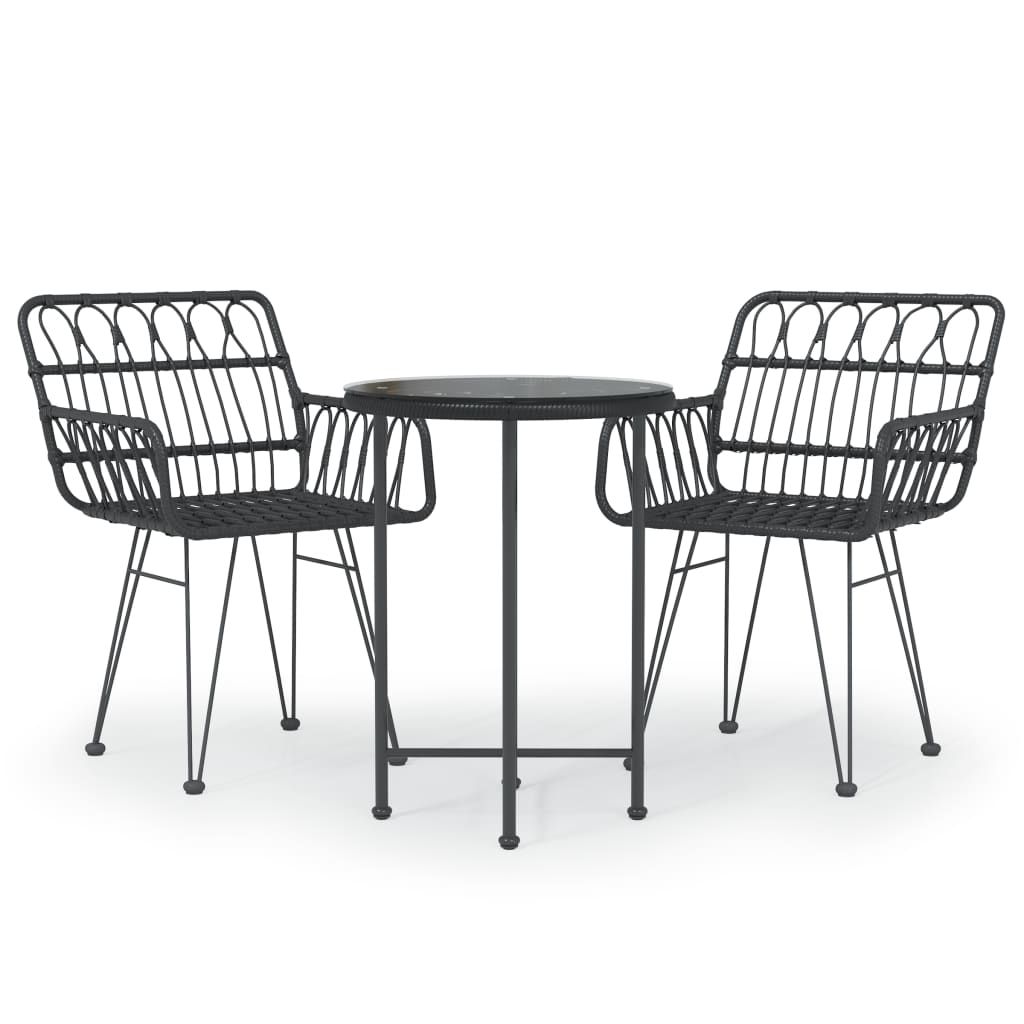 3-częściowy zestaw mebli ogrodowych, czarny, polirattan