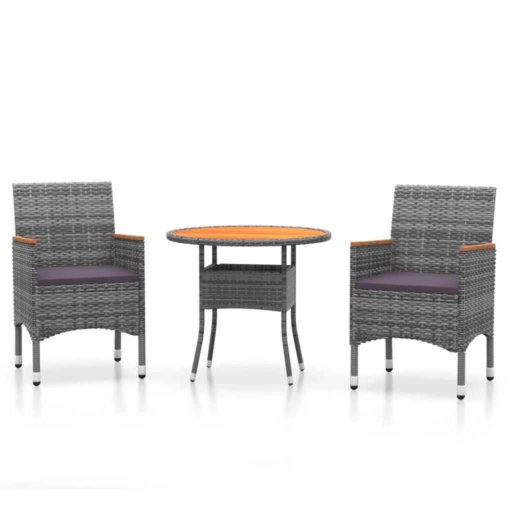 3-częściowy zestaw mebli ogrodowych, polirattan, szary