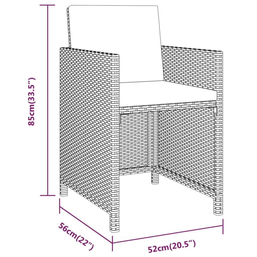 Usiądź i ciesz się pyszną kolacją lub dowolnym innym posiłkiem przy tym zestawie mebli ogrodowych. Stabilny i solidny stół: lite drewno akacjowe to piękny, naturalny materiał. Jest to tropikalne, twarde drewno cechujące się zwartością, trwałością i solidnością. Stół ogrodowy wykonano z litego drewna akacjowego i wykończono naturalnym olejem, dzięki czemu jest stabilny i łatwy w utrzymaniu.Łatwe w czyszczeniu i lekkie krzesła: posiadające malowaną proszkowo, stalową ramę i pokryte odpornym na czynniki pogodowe rattanem PE krzesła są solidne i łatwe w czyszczeniu. Za sprawą lekkiej konstrukcji meble można łatwo przestawiać.Wygodne poduszki: co więcej, grubo wyściełane poduszki zapewnią Ci dodatkowy komfort podczas relaksu. Zdejmowane poszewki, które można prać, zostały wyposażone w praktyczne zamki.Listwowy blat: skonstruowany z listew blat podkreśla rustykalny i elegancki wygląd mebla. Uwaga:Aby przedłużyć żywotność mebli ogrodowych, zalecamy zabezpieczenie ich wodoodpornym pokrowcem.