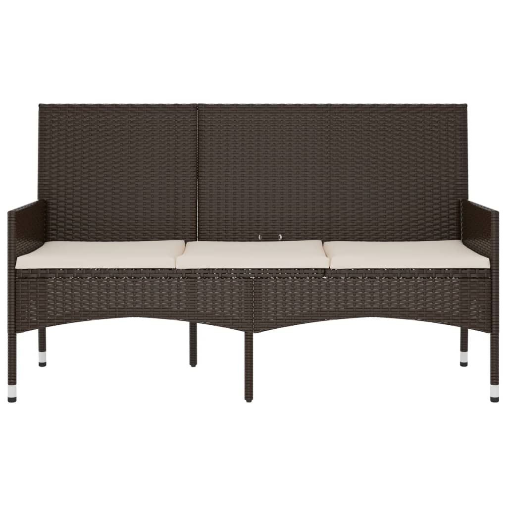 3-osobowa ławka ogrodowa z poduszkami, brązowa, polirattan