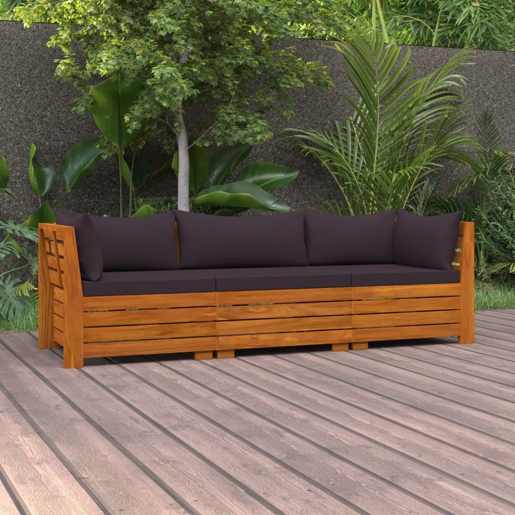 3-osobowa sofa ogrodowa z poduszkami, lite drewno akacjowe