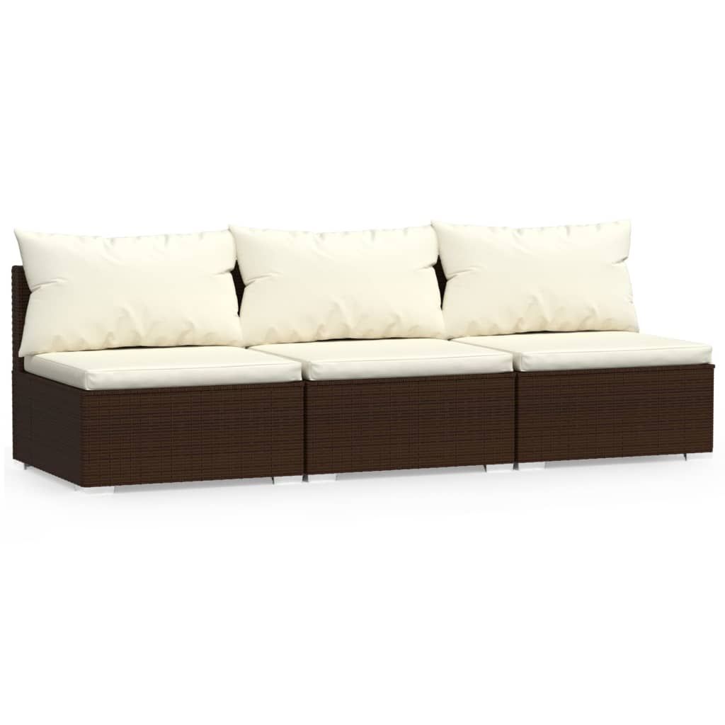 3-osobowa sofa z poduszkami, brązowa, polirattan