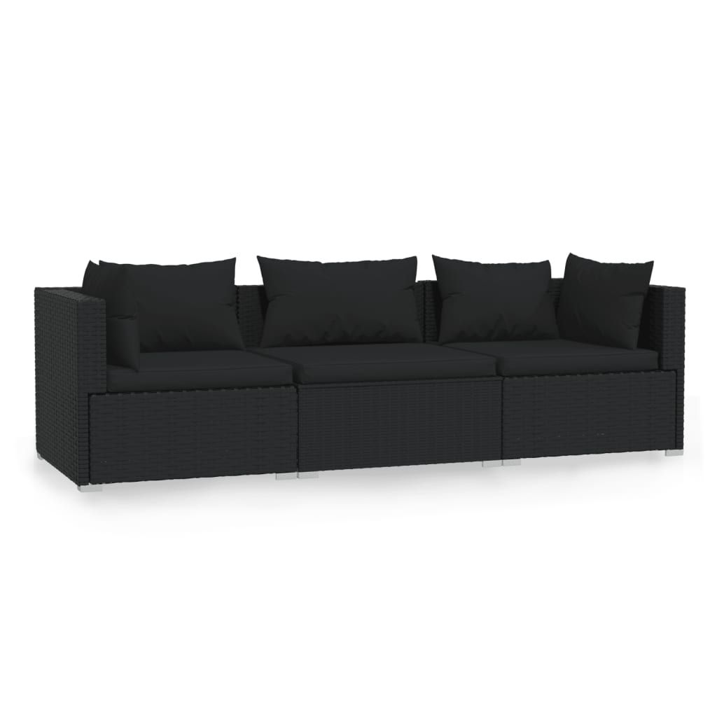 3-osobowa sofa z poduszkami, czarna, polirattan