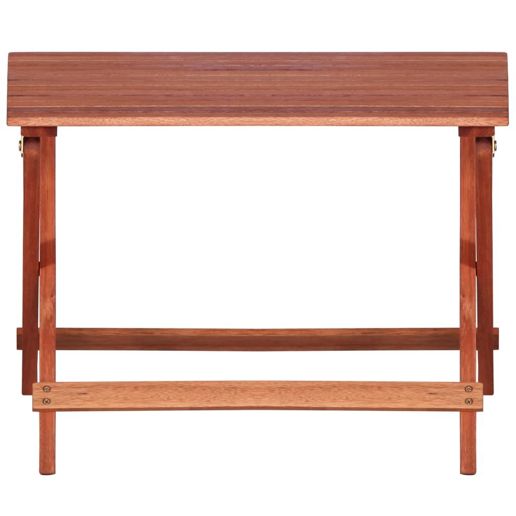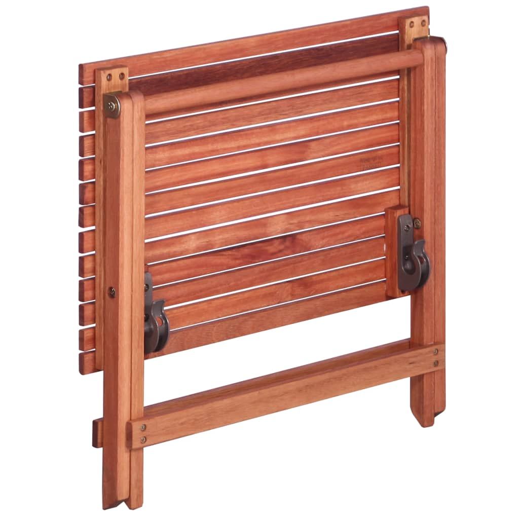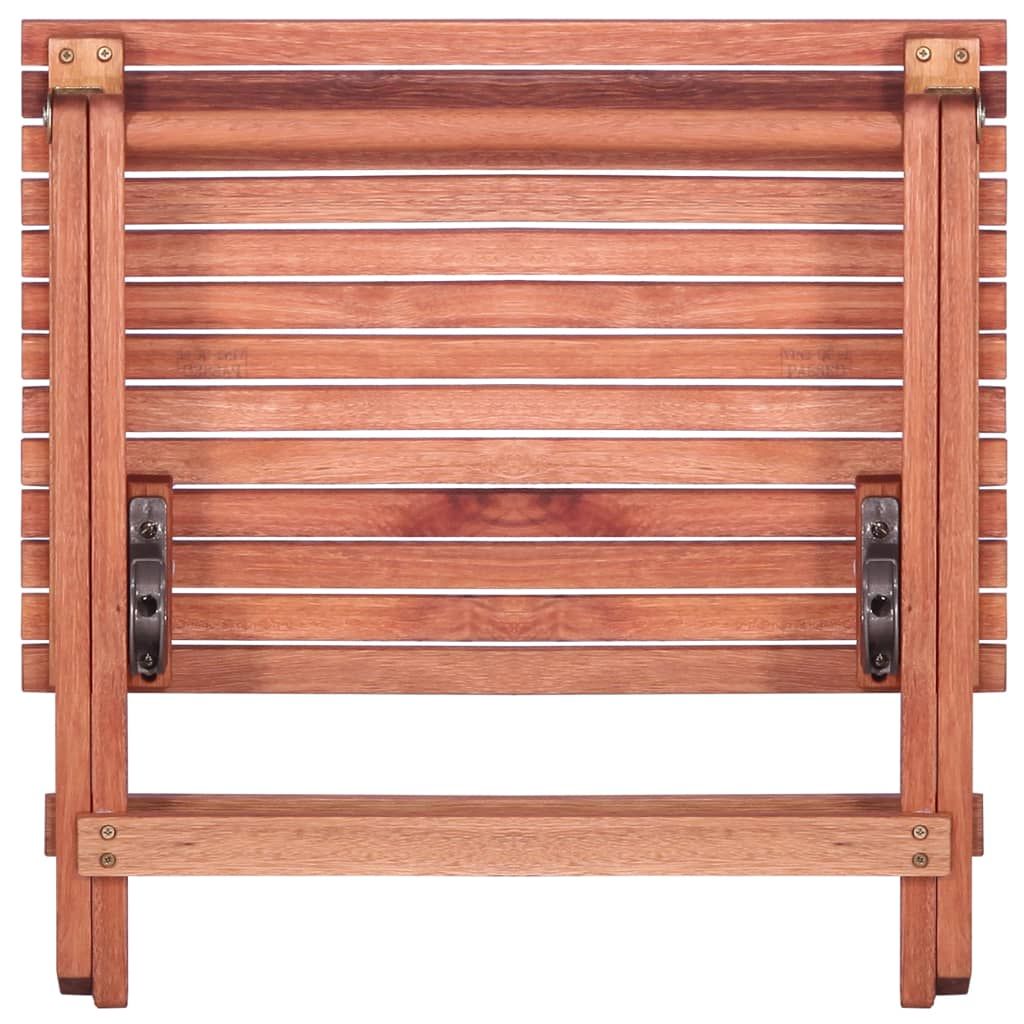 Opis produktu: Elegancki i szykowny drewniany zestaw mebli dla dzieci będzie świetnym wyborem, aby maluchy mogły zjeść posiłek na tarasie lub w ogrodzie. Składany zestaw mebli został wykonany z litego drewna eukaliptusowego, które zapewnia mu trwałość i odporność na niekorzystne warunki pogodowe. Wykończona olejem powierzchnia jest łatwa w czyszczeniu, wystarczy wilgotna ściereczka. Składana konstrukcja ułatwia przechowywanie i transport zestawu. Przesyłka obejmuje: 1 stolik, 1 ławkę i 2 krzesła