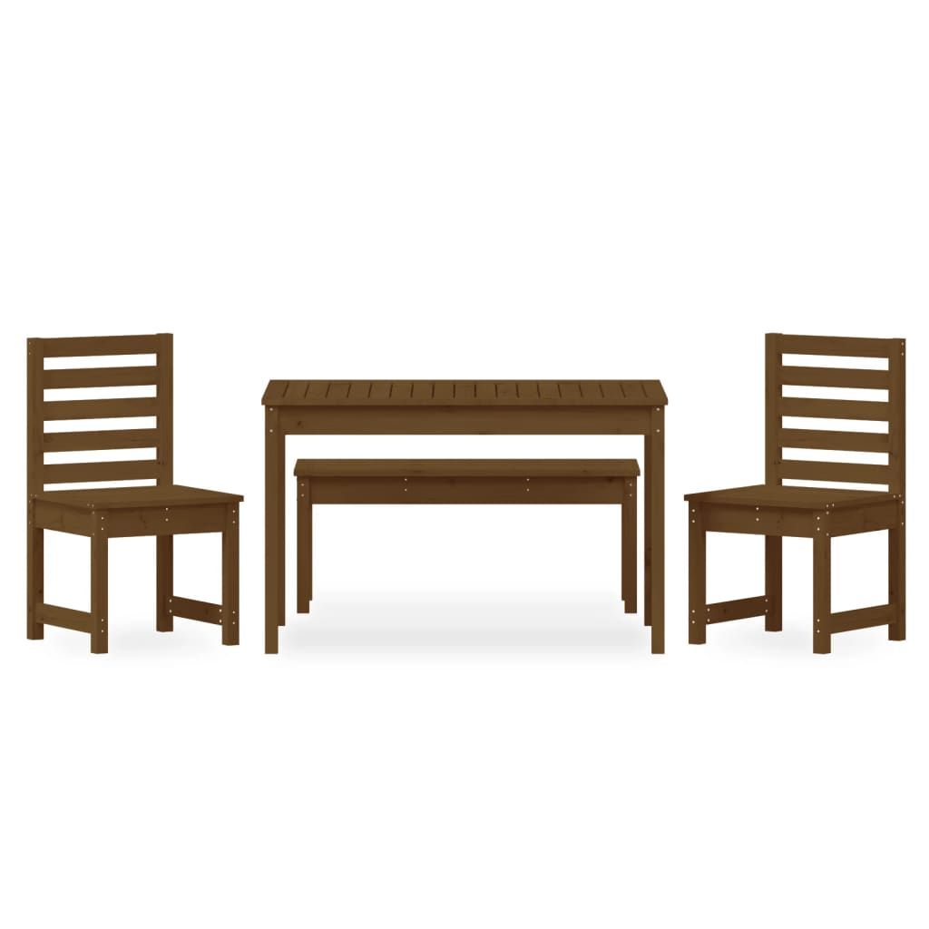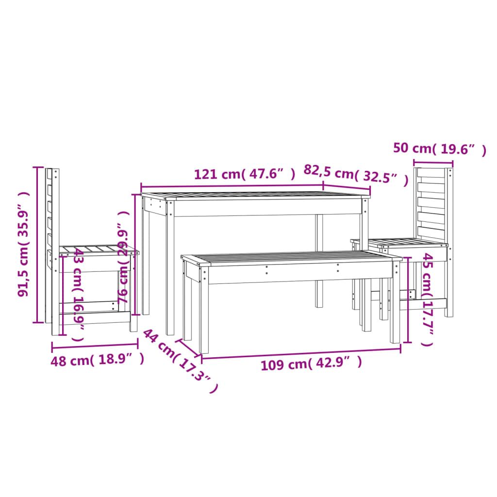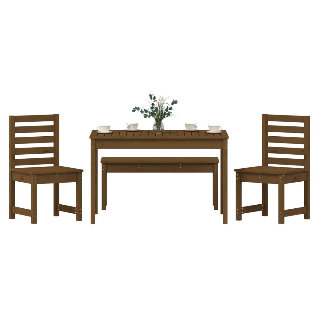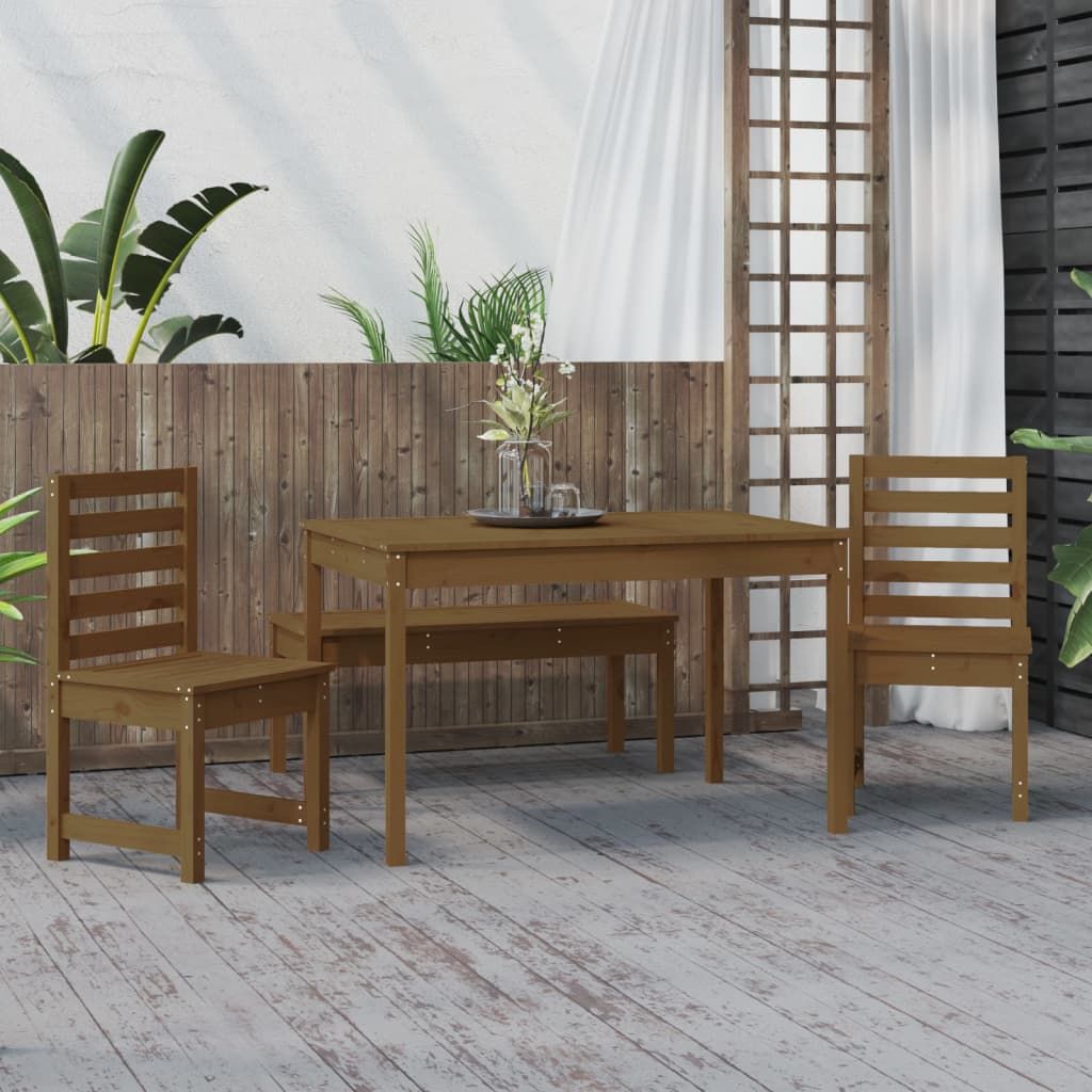 Ten klasyczny, drewniany zestaw mebli ogrodowych sprawdzi się doskonale na zewnątrz oraz stanie się głównym punktem Twojego ogrodu, patio, tarasu itp. Lite drewno sosnowe: zestaw ten wykonano z litego drewna sosnowego. Lite drewno sosnowe to piękny, naturalny materiał. Drewno sosnowe ma prostą strukturę słojów, a sęki nadają mu wyjątkowy, rustykalny wygląd.Praktyczny blat: stół oferuje solidny blat. Możesz postawić na nim przekąski, napoje oraz ulubione dekoracje.Komfort siedzenia: wykonane z listew siedzisko i oparcie krzesła ogrodowego zapewniają doskonałe podparcie.Wiele zastosowań: zestaw mebli o prostym i ponadczasowym designie idealnie sprawdzi się na balkonach, werandach, tarasach i w ogrodach. Uwaga:Aby utrzymać meble ogrodowe w dobrej kondycji, zalecamy zabezpieczenie ich wodoodpornym pokrowcem.