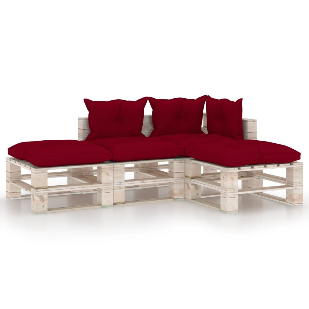 4-cz. zestaw mebli ogrodowych z palet, z poduszkami, sosna