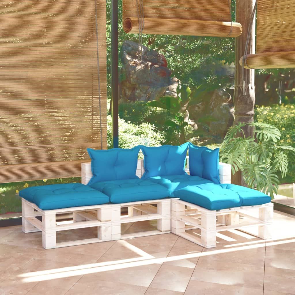4-cz. zestaw mebli ogrodowych z palet, z poduszkami, sosna