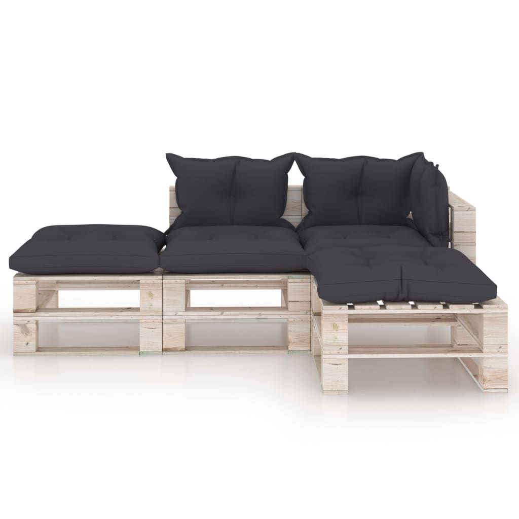 4-cz. zestaw mebli ogrodowych z palet, z poduszkami, sosna