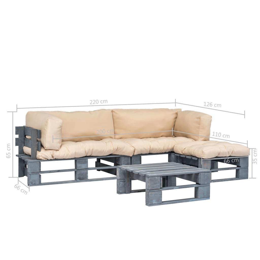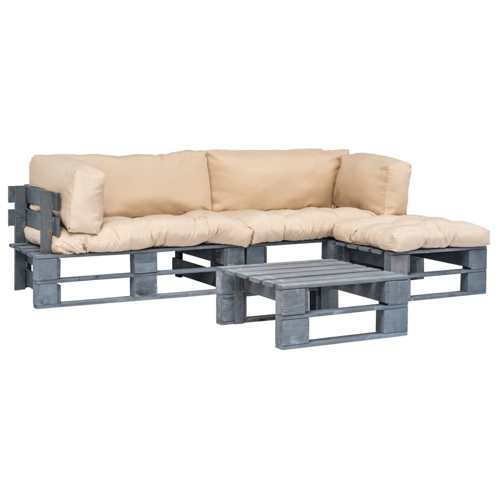 4-cz. zestaw ogrodowy, piaskowe poduszki, palety z drewna