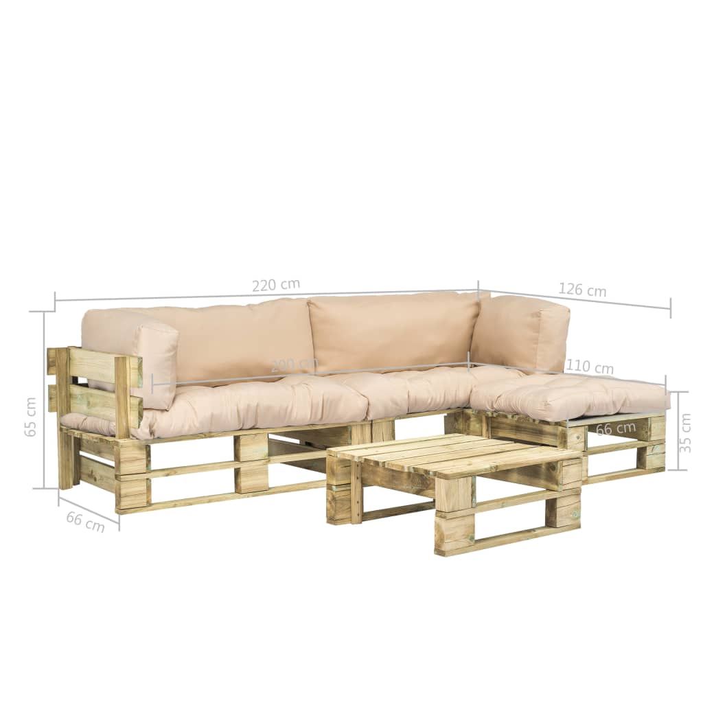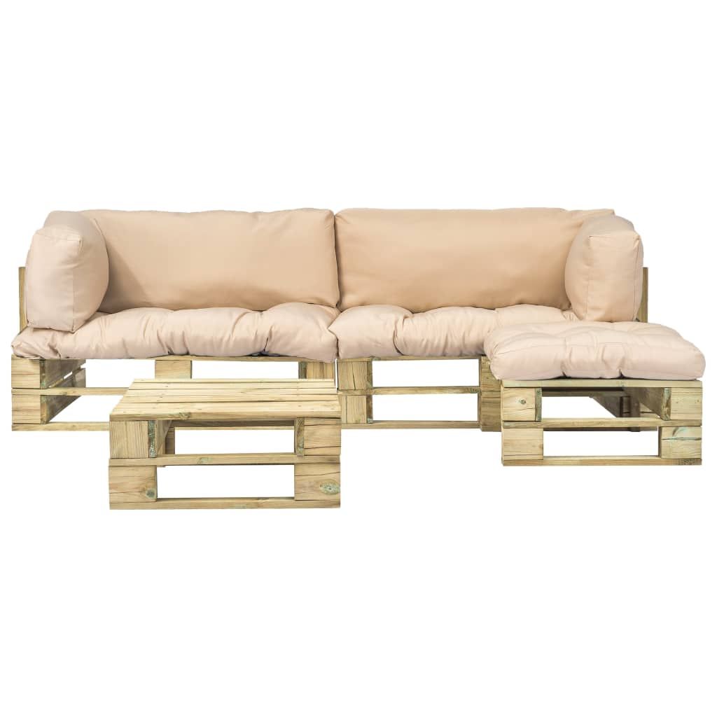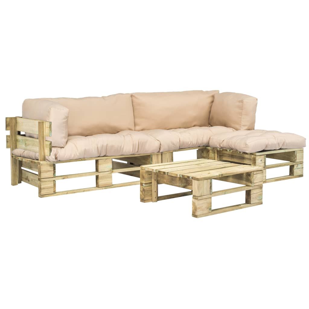 4-cz. zestaw ogrodowy, piaskowe poduszki, palety z drewna