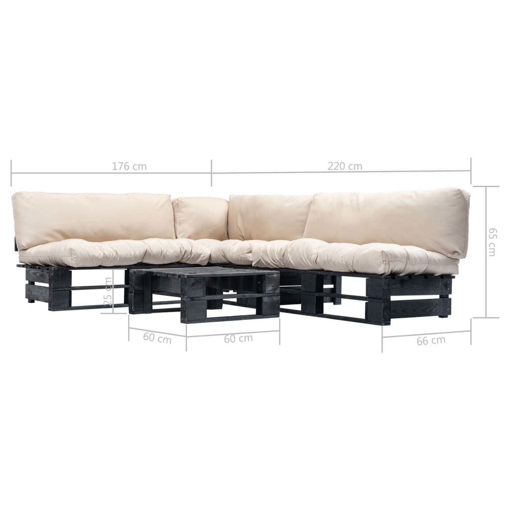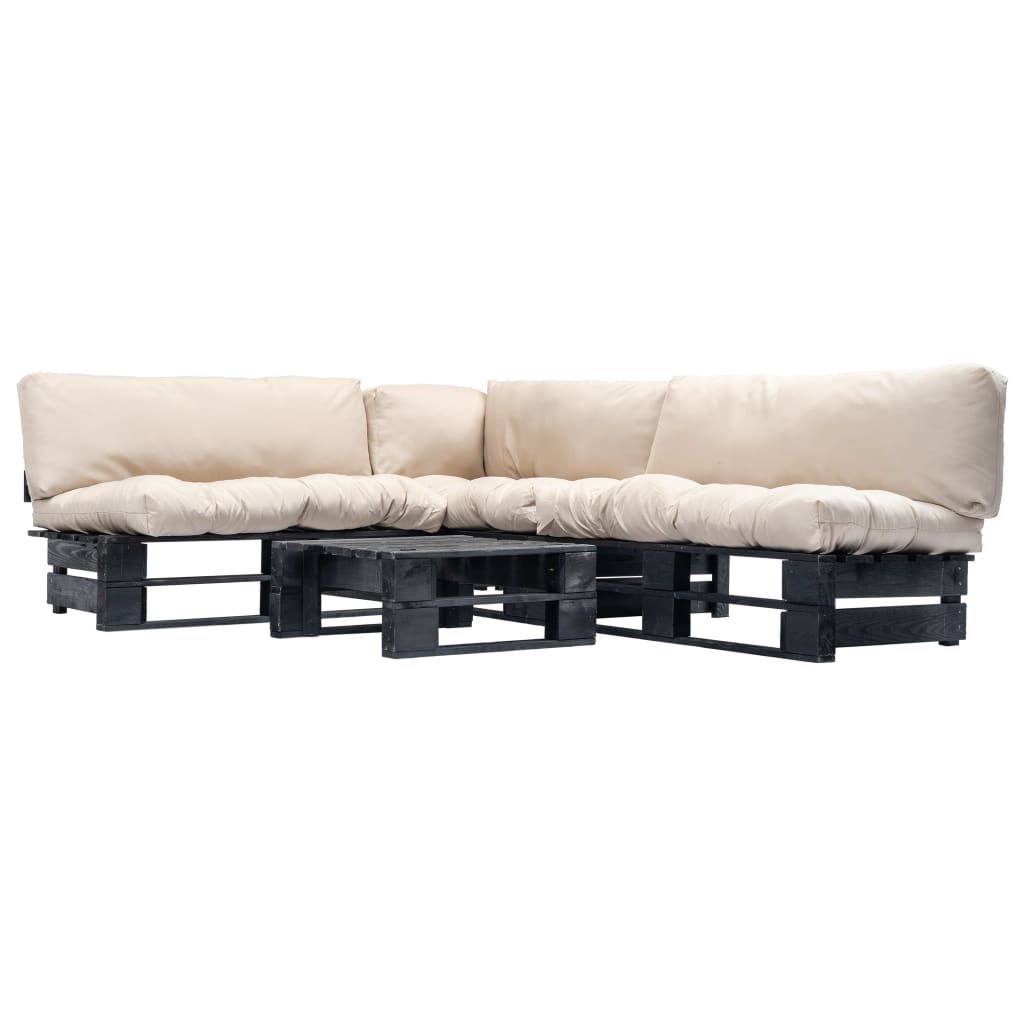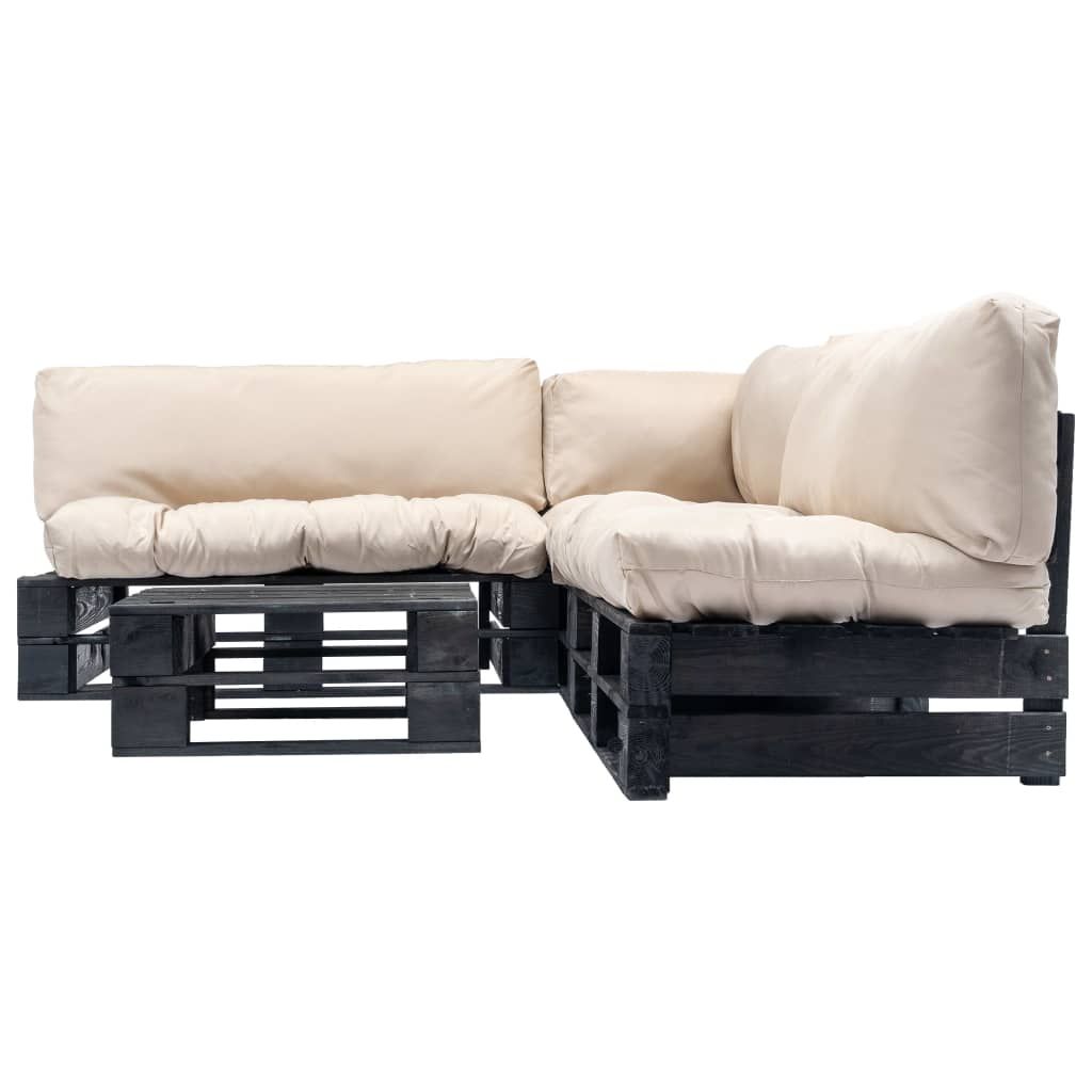 4-cz. zestaw ogrodowy, piaskowe poduszki, palety z drewna