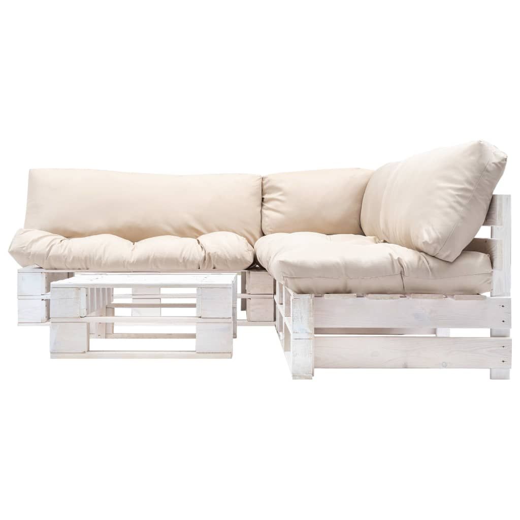 4-cz. zestaw ogrodowy, piaskowe poduszki, palety z drewna