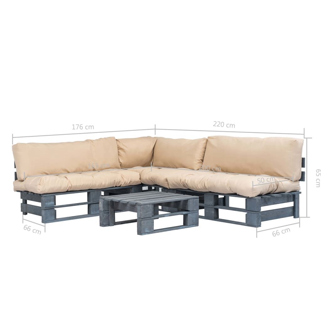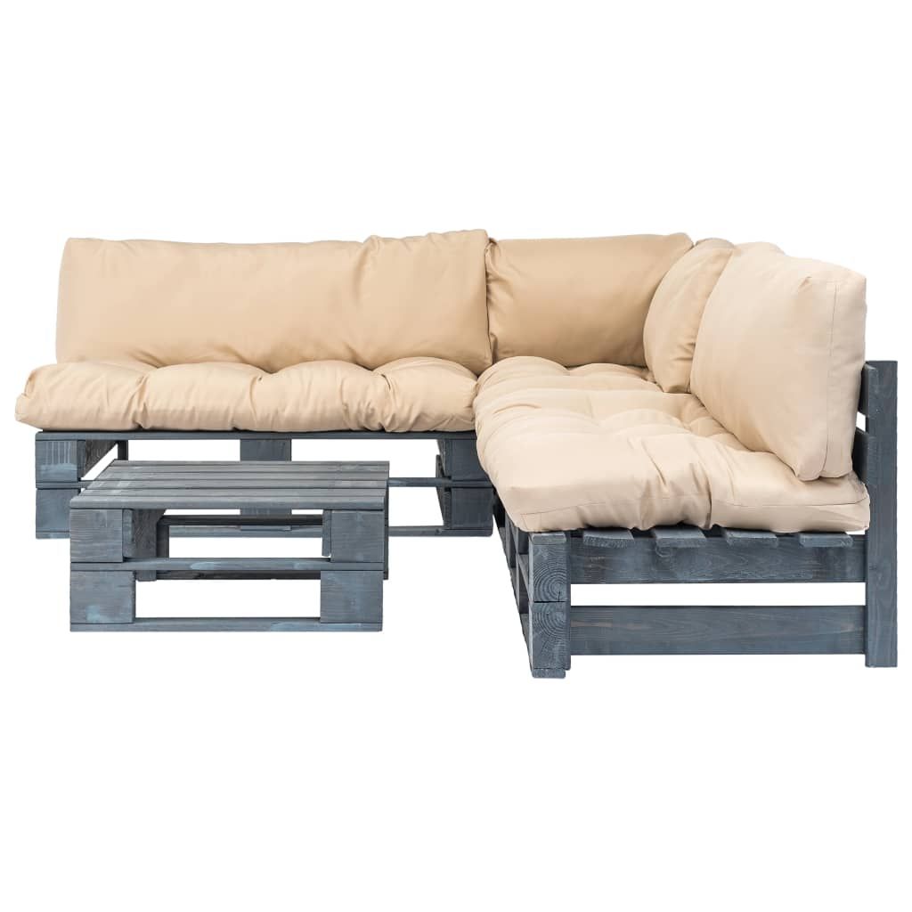 4-cz. zestaw ogrodowy, piaskowe poduszki, palety z drewna