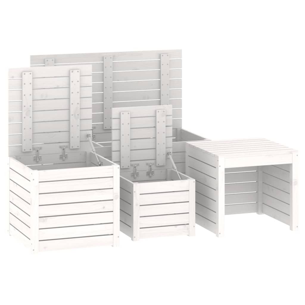 4-cz. zestaw skrzyń ogrodowych, biały, lite drewno sosnowe
