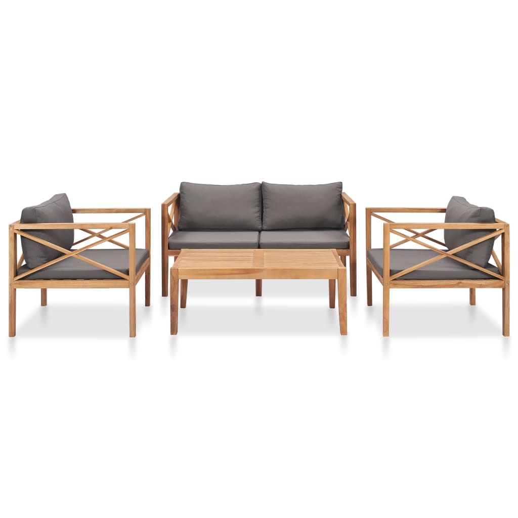 Zestaw mebli wypoczynkowych z litego drewna wyróżnia się konstrukcją krzyżakową i miękkimi poduszkami, stanowiąc doskonałe połączenie stylu i funkcjonalności. Dzięki niemu możesz zrelaksować się ze swoją rodziną lub znajomymi w ogrodzie. Produkt wykonany został z niezwykle trwałego, twardego drewna tekowego, które było sezonowane, suszone komorowo, a następnie drobno oszlifowane, by nadać mu bardzo gładką powierzchnię. Drewno tekowe słynie z wyjątkowej wytrzymałości i odporności na warunki atmosferyczne, dzięki czemu jest znacznie bardziej odpowiednie do produkcji mebli ogrodowych niż jakikolwiek inny rodzaj drewna. Tek to idealny wybór, jeśli chcesz kupić trwałe meble ogrodowe. Grubo wyściełane poduszki na siedzisko i oparcie zapewniają większą wygodę. Szlifowana powierzchnia jest łatwa do czyszczenia za pomocą wilgotnej ściereczki. Komplet jest również lekki i łatwy do przenoszenia. Ułatwia tworzenie różnych aranżacji i dopasowanie do indywidualnych potrzeb. Stanie się centralnym punktem Twojego ogrodu lub patio. Uwaga: zalecamy przykrycie zestawu na czas deszczu, śniegu i mrozu.