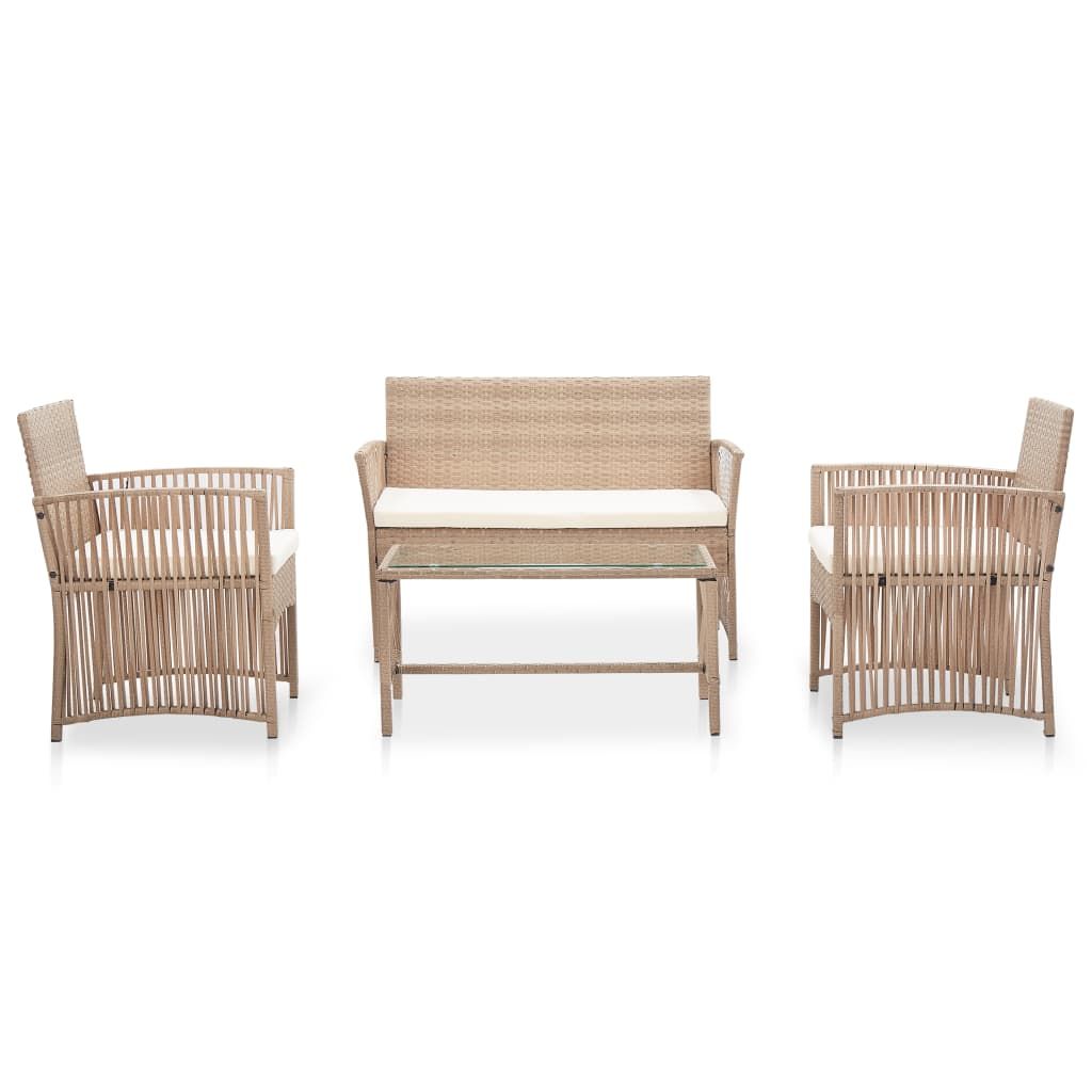4-cz. zestaw wypoczynkowy do ogrodu, poduszki, rattan PE, beż