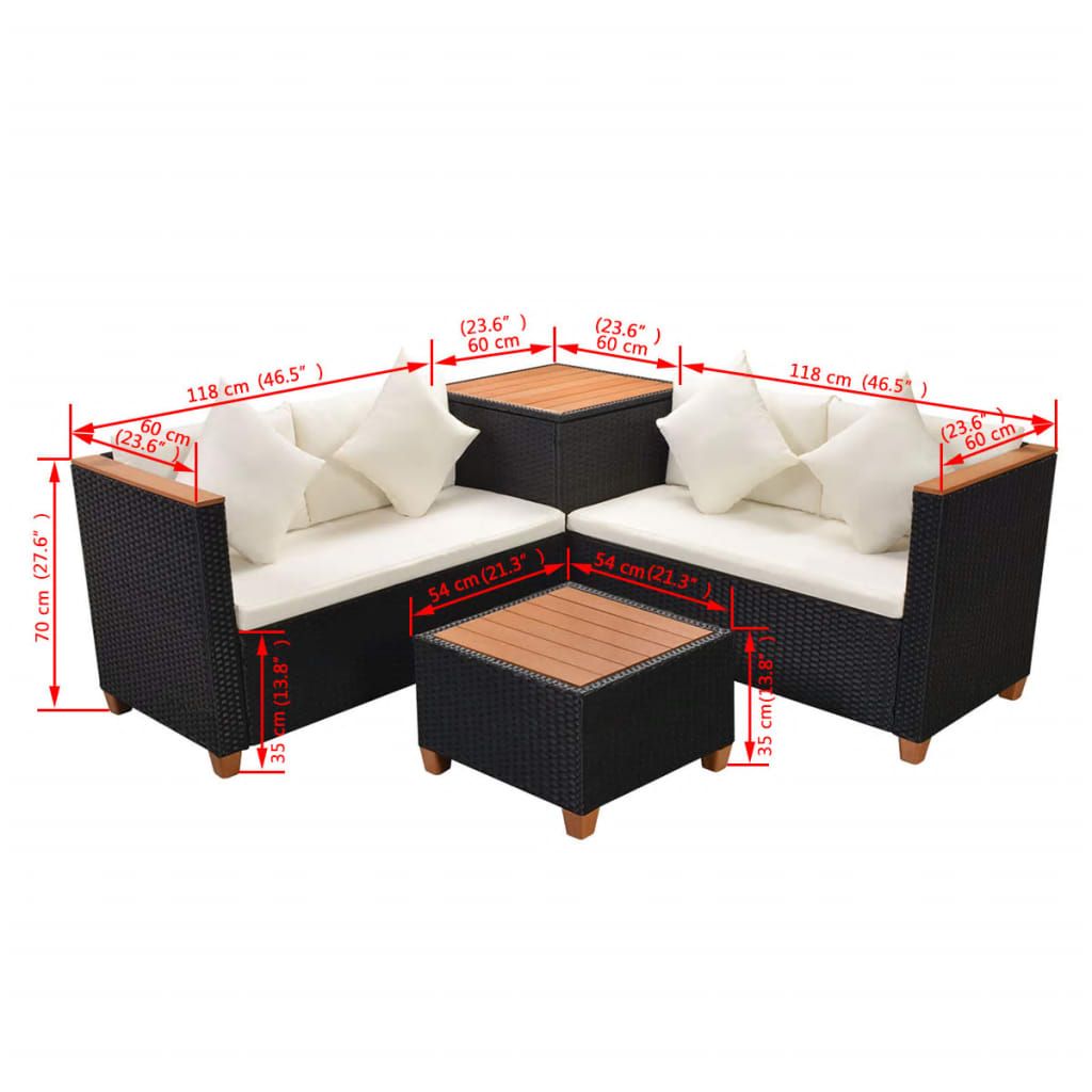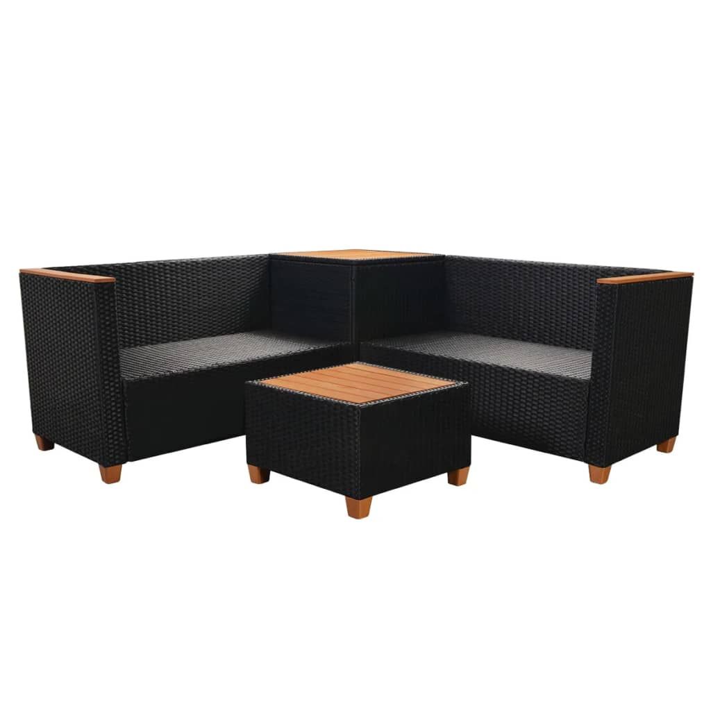 4-cz. zestaw wypoczynkowy do ogrodu, poduszki, rattan PE czarny