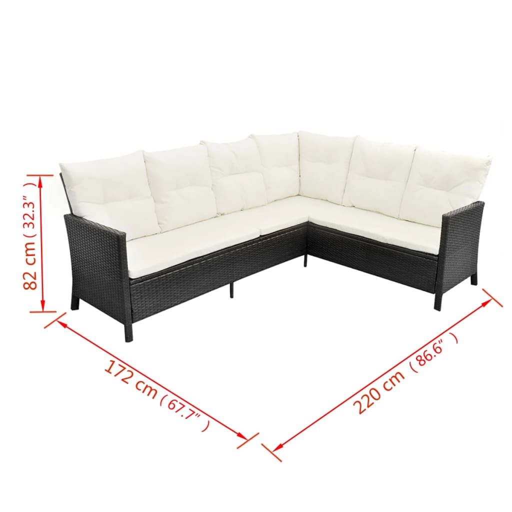 • Wymiary sofy w kształcie litery L: 220 x 172 x 82 cm (szer. x gł. x wys.)