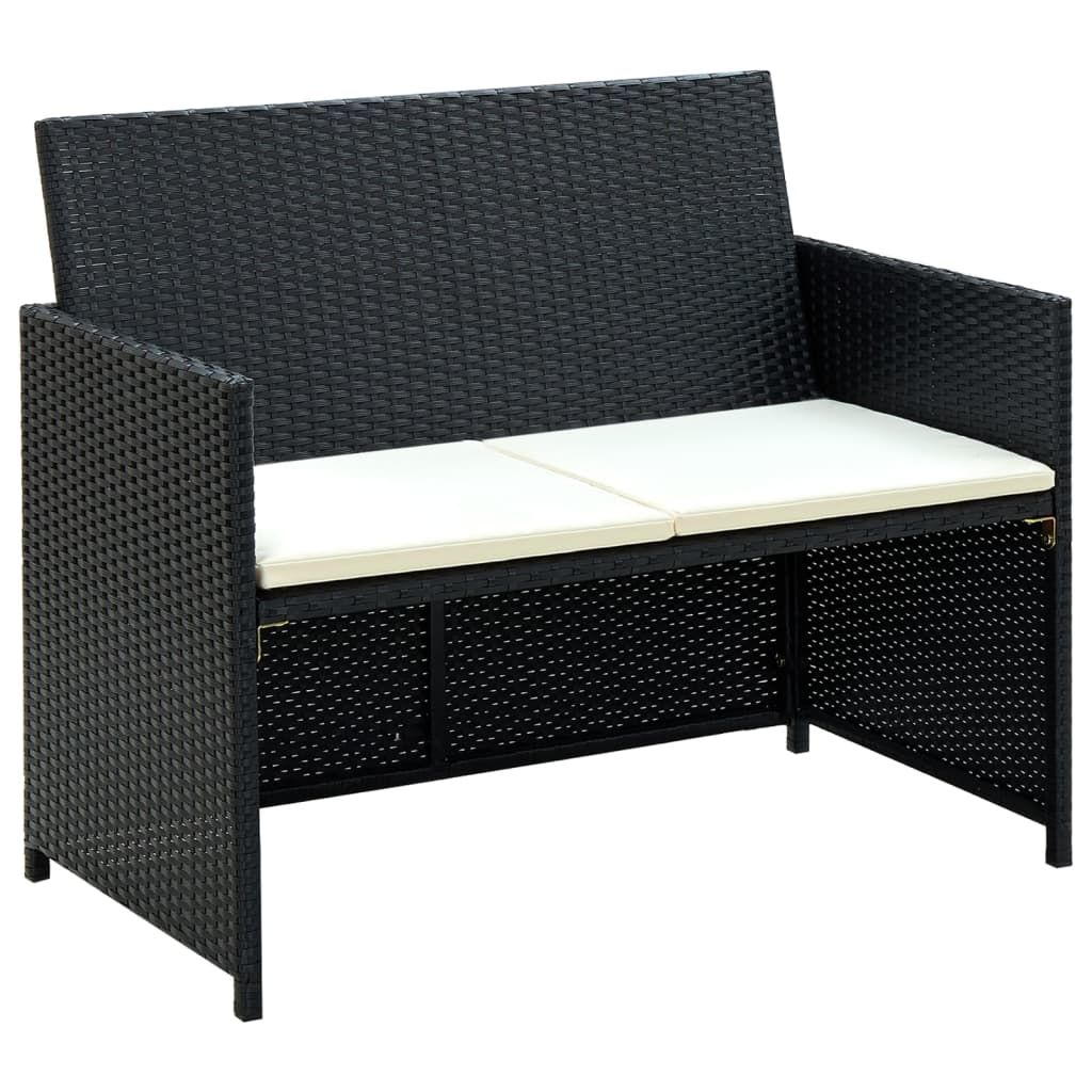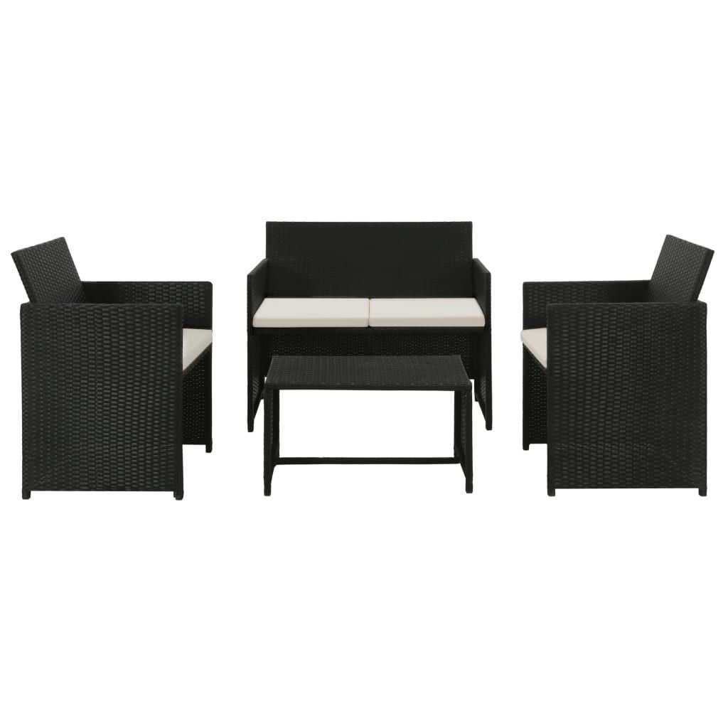 4-cz. zestaw wypoczynkowy do ogrodu, poduszki, rattan PE czarny